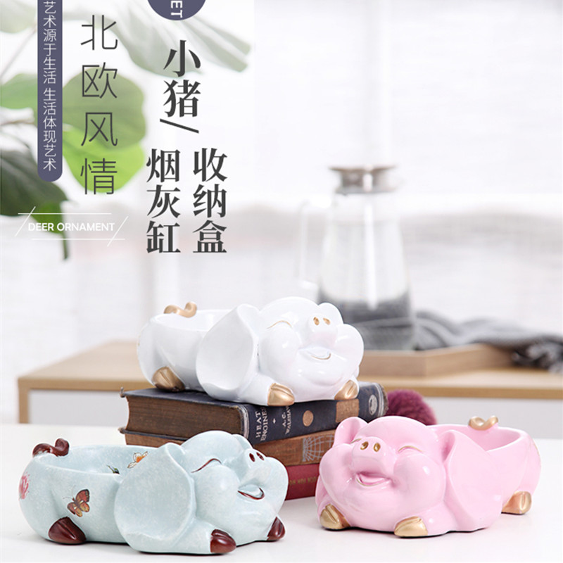 北欧招财猪烟灰缸创意个性家居多功能收纳办公室客厅装饰茶几摆件