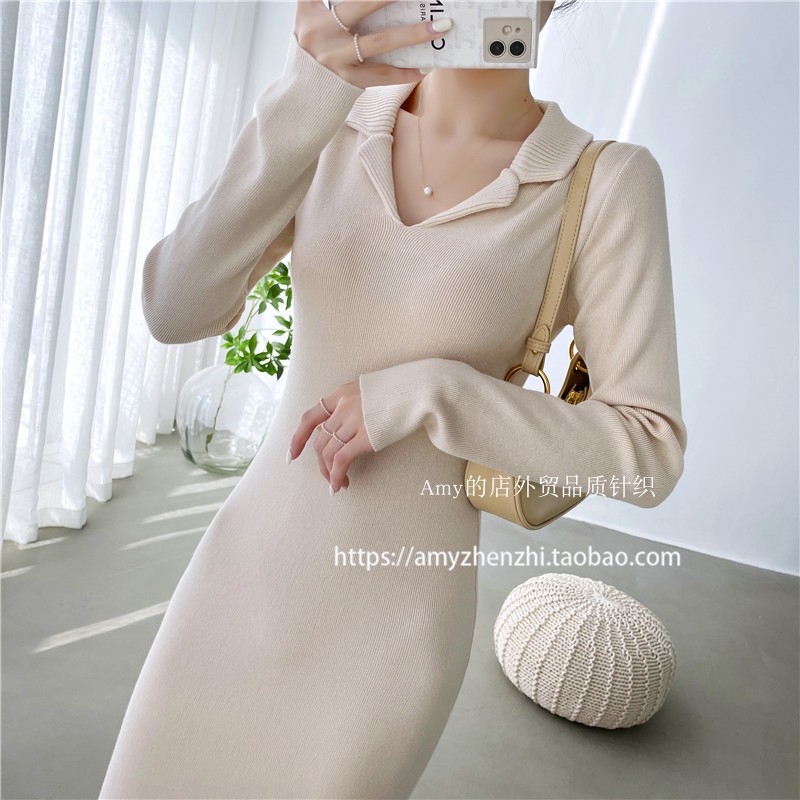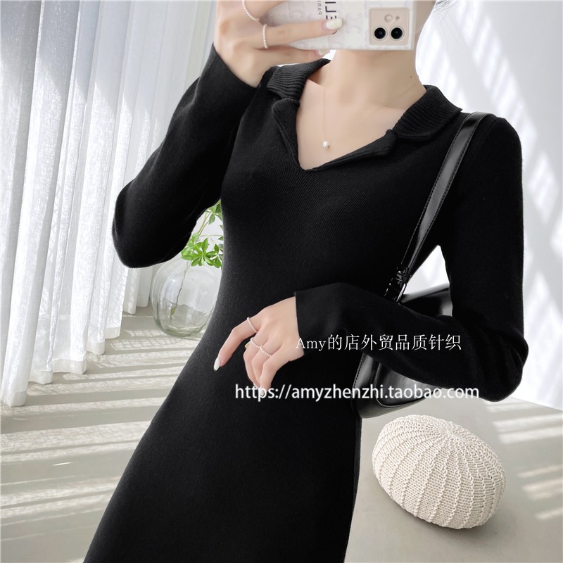 秋冬拼接毛衣裙女修身显瘦过膝长裙气质包臀连衣裙软糯针织打底裙