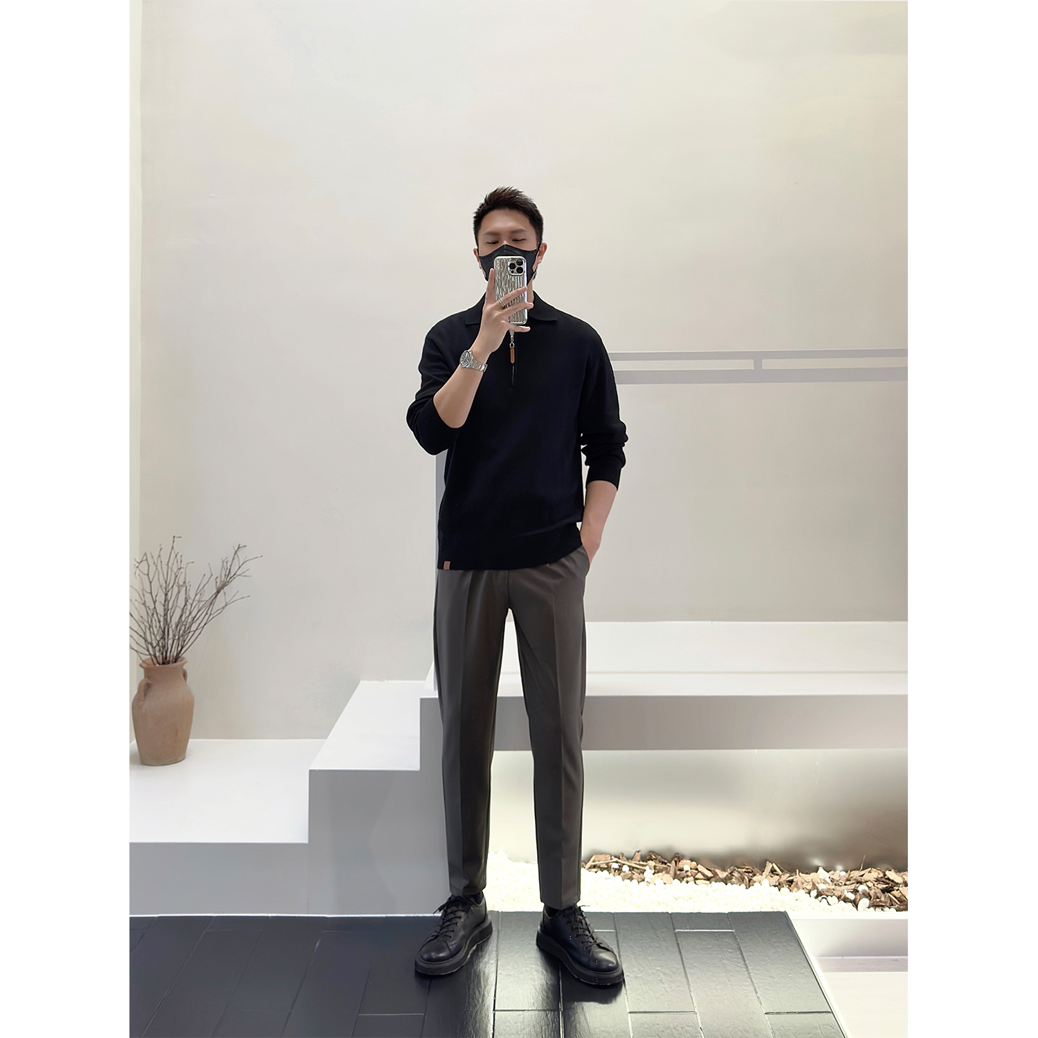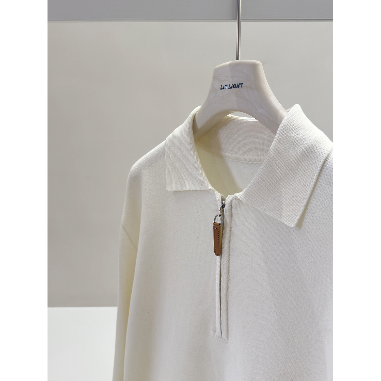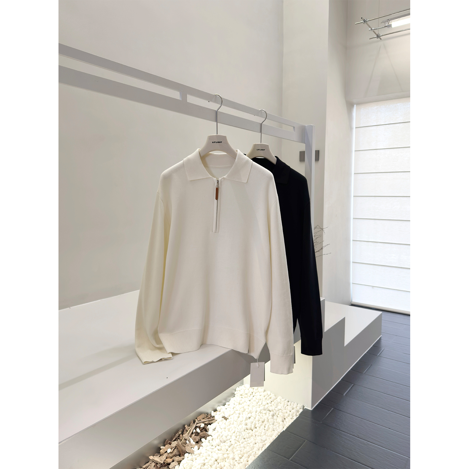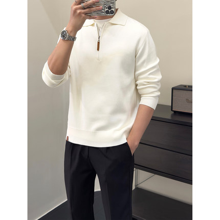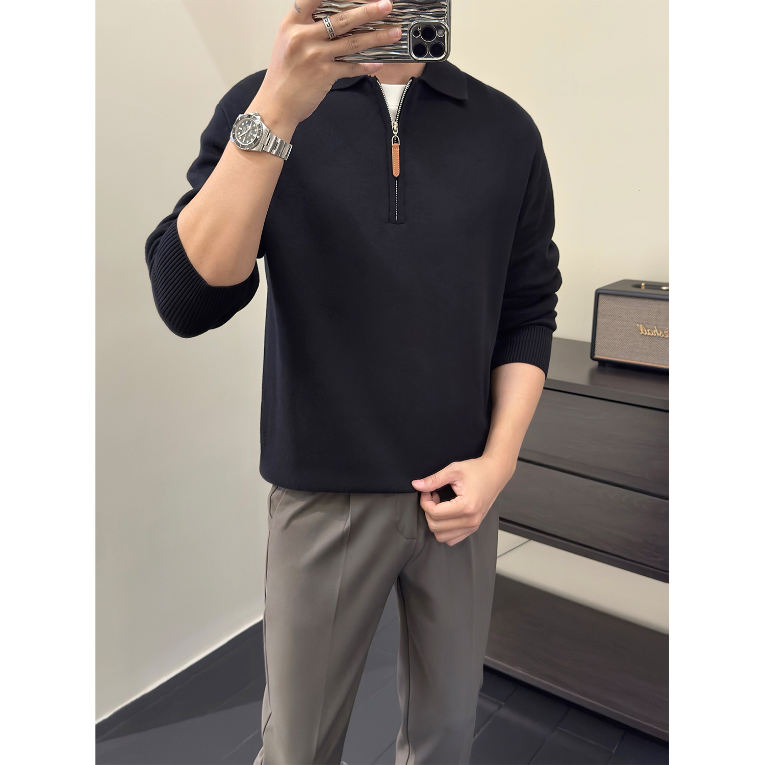 里奈男装秋季新款男士针织翻领POLO衫宽松休闲套头百搭半拉链上衣