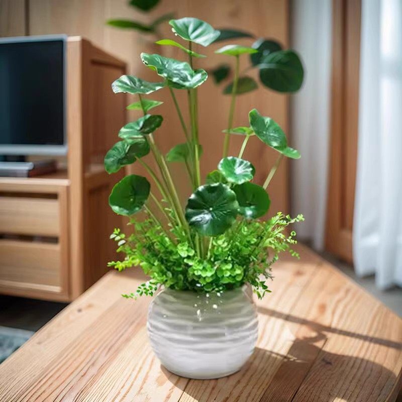 仿真铜钱草小荷叶绿色植物塑料假花 家居装饰品客厅餐厅插花花艺