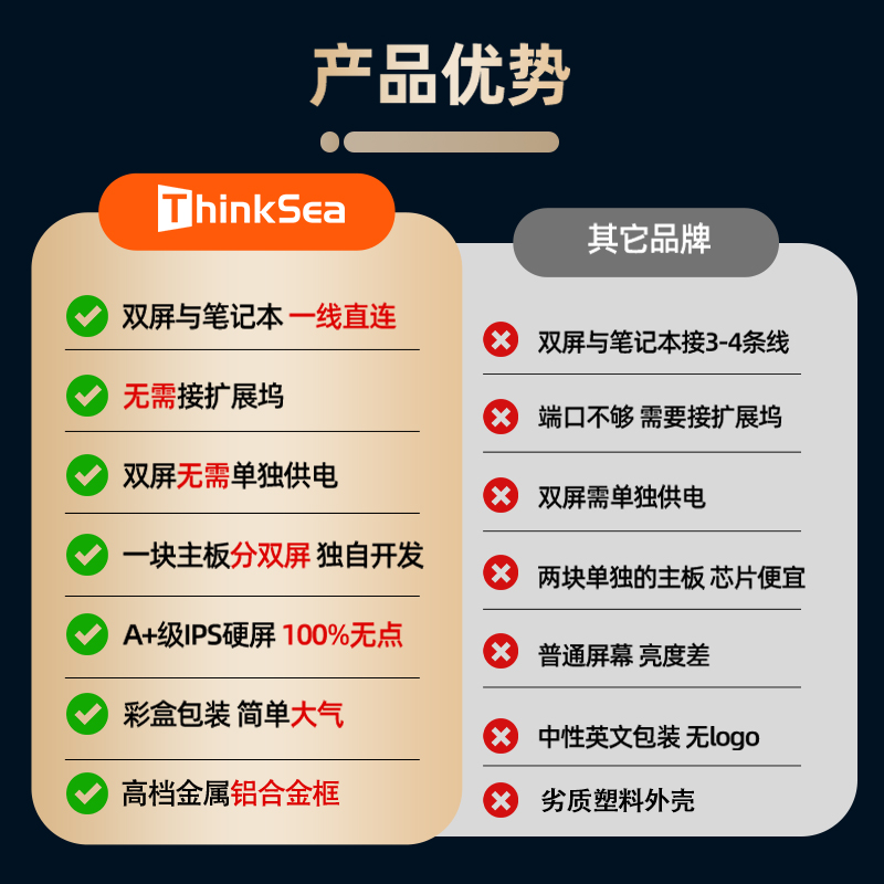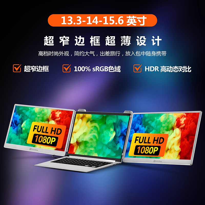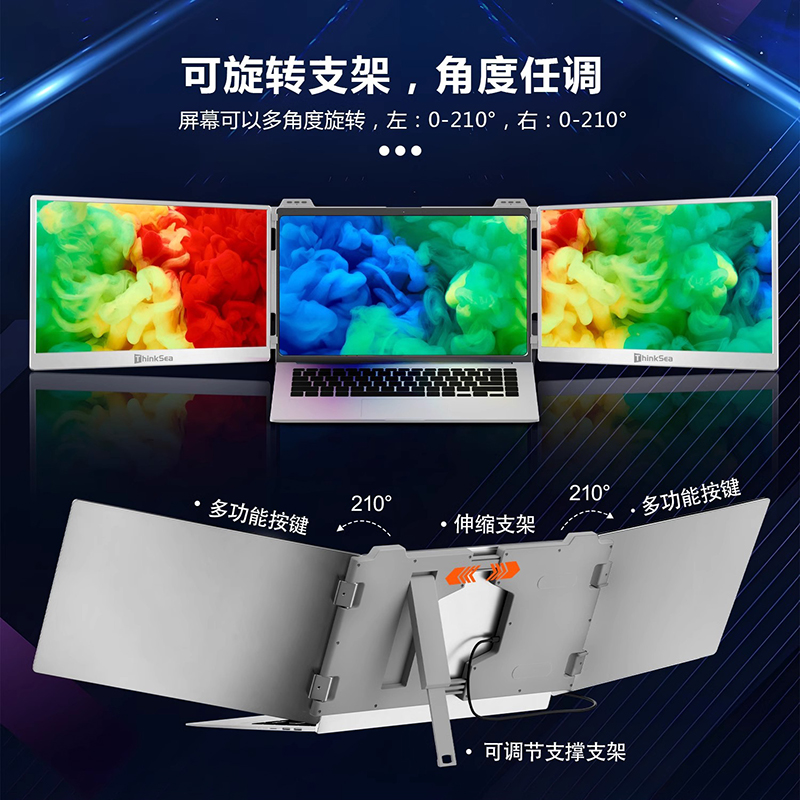 ThinkSea双屏便携显示器笔记本扩展屏炒股办公多屏拓展折叠三联屏