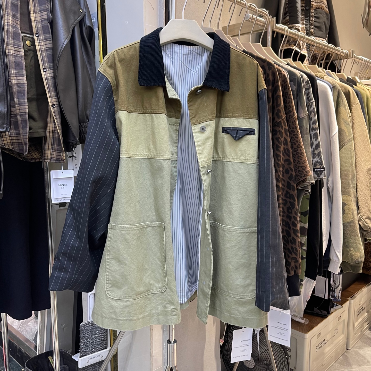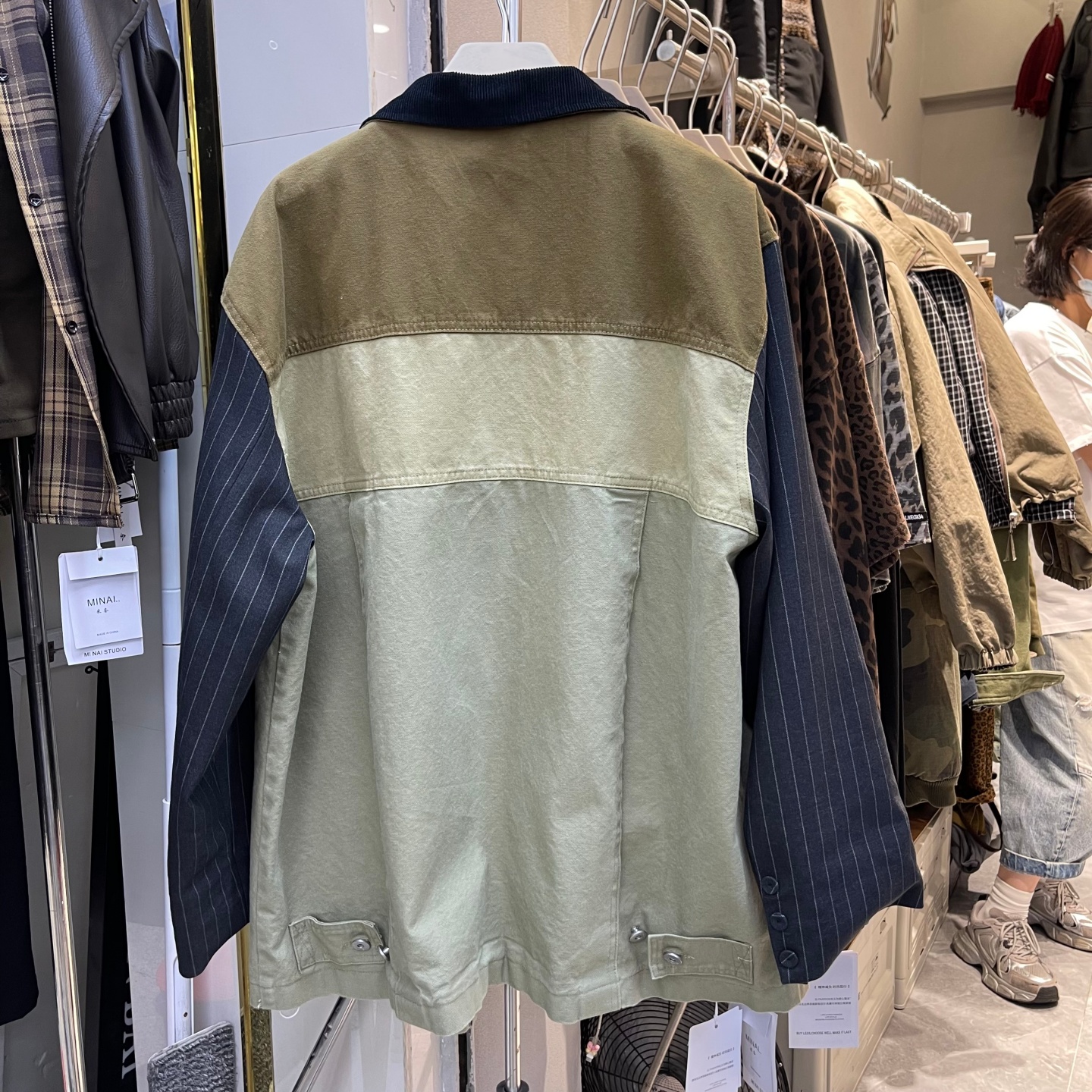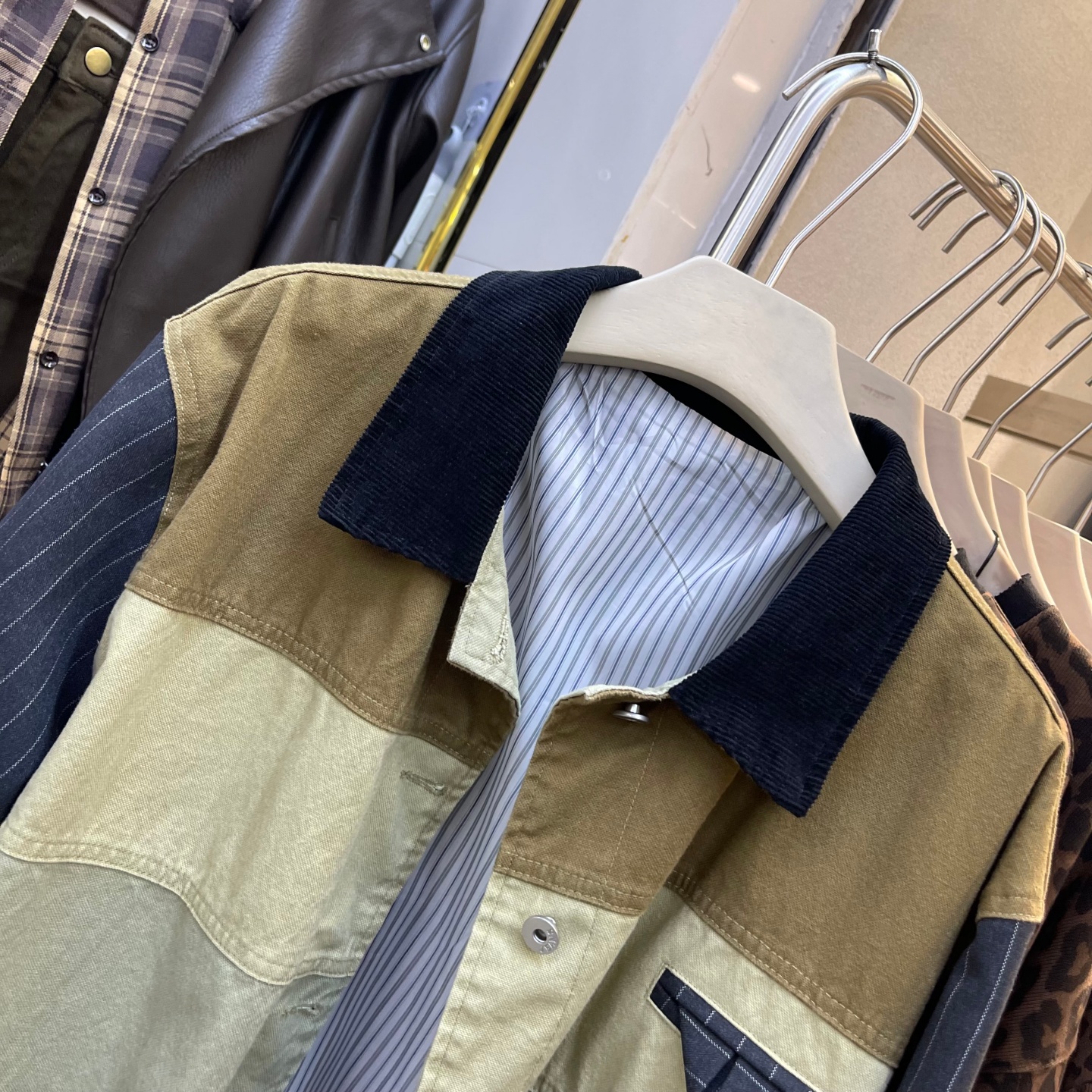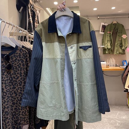 欧货撞色拼接时尚气质中长款外套