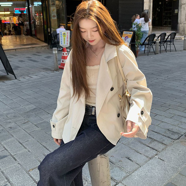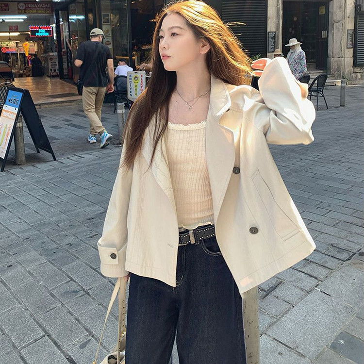 韩系气质简约通勤收腰短款外套