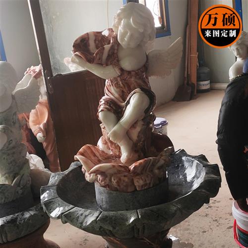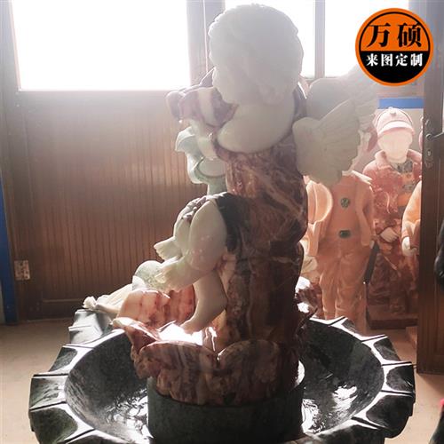 欧式鱼池雕塑工艺品家居酒店水景装饰婚庆摆件小天使落地流水喷泉