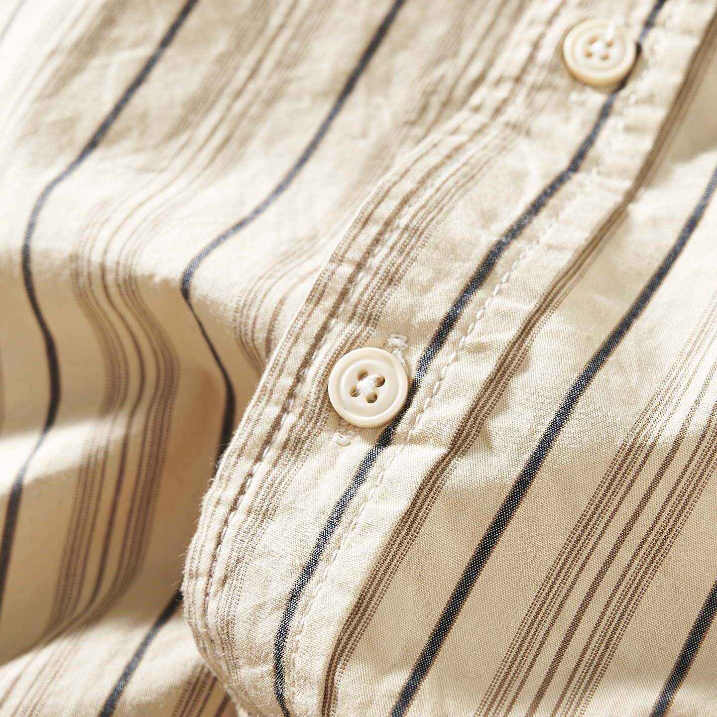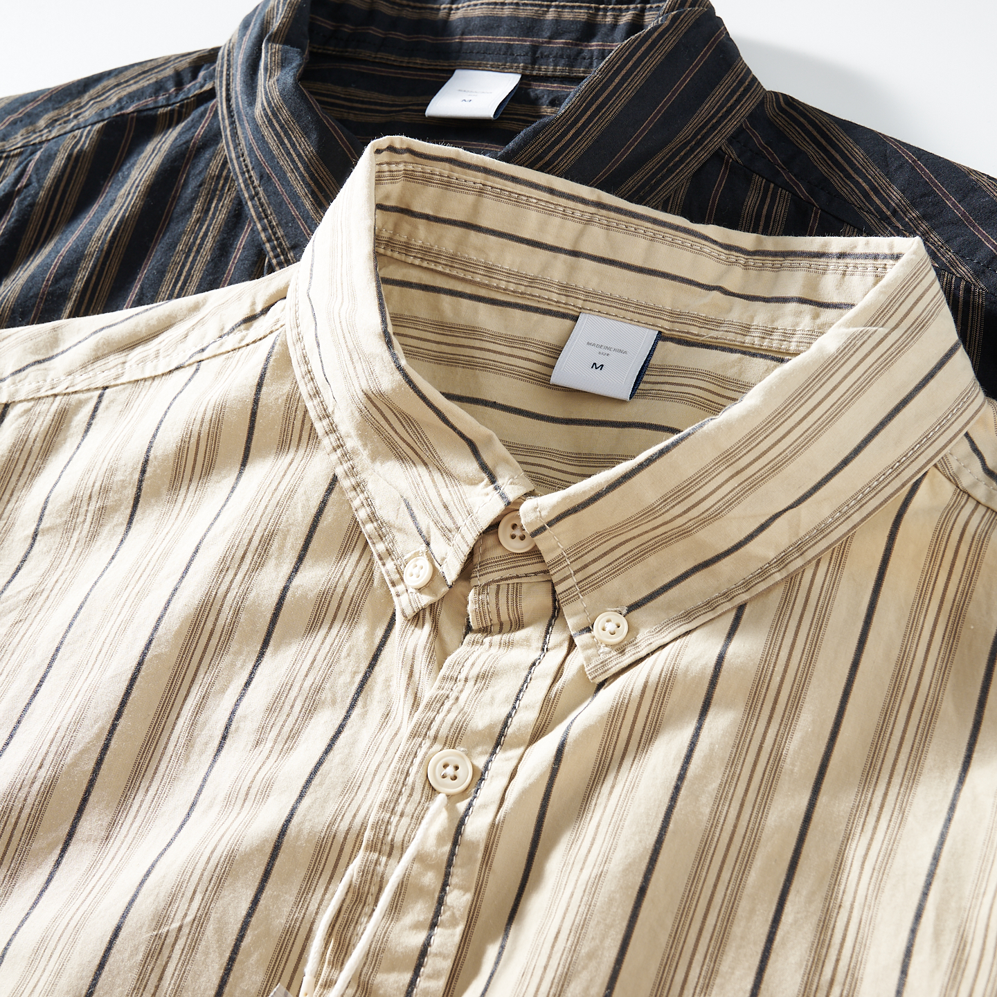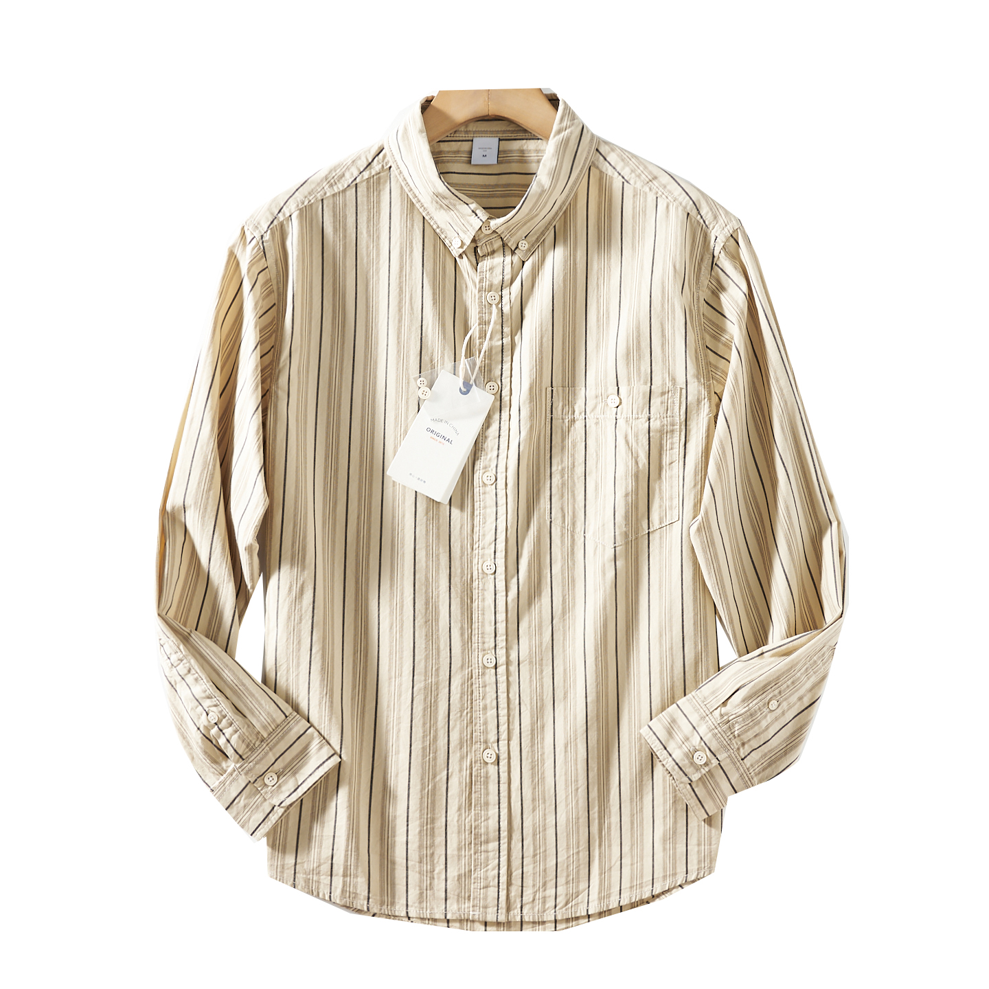 日系宽松条纹复古衬衫外套秋季新款男士休闲长袖衬衣水洗纯棉上衣