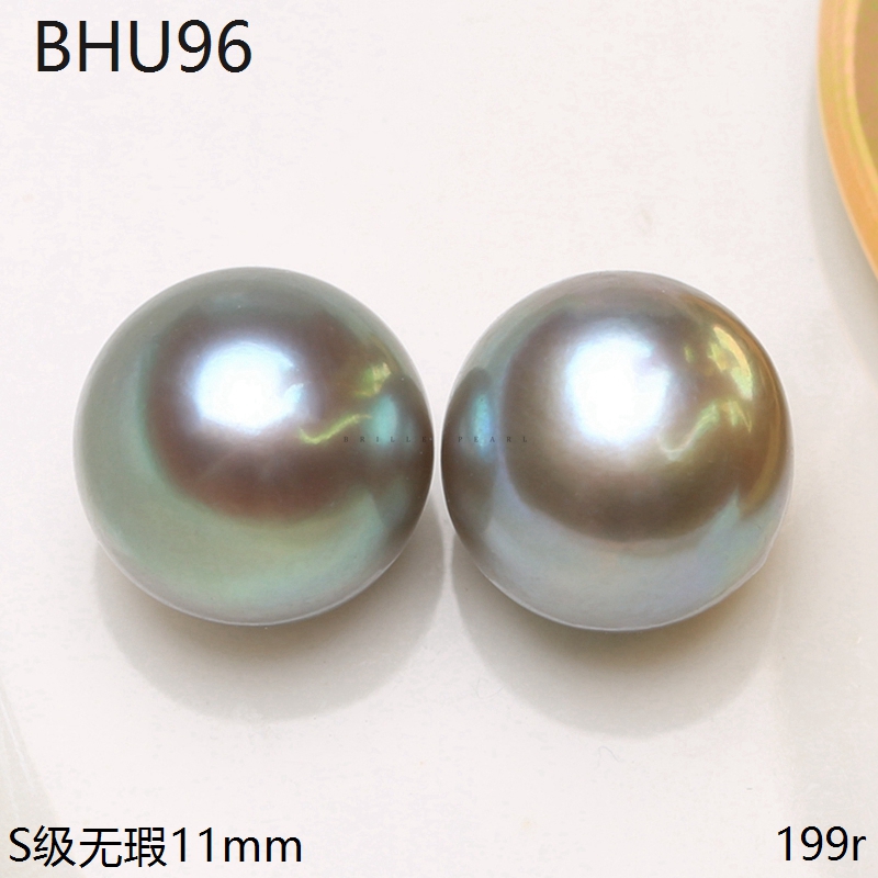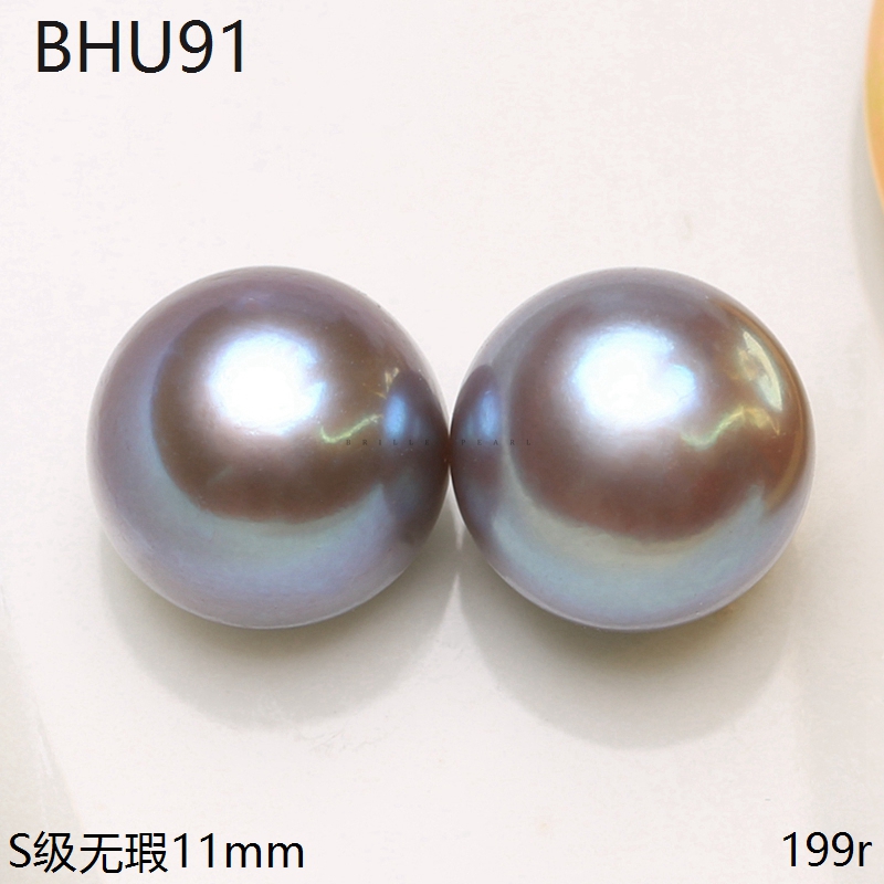 11mm无核天然淡水珍珠馒头形散珠配对真多麻灰极光可定制耳钉BHU