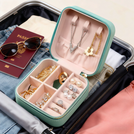 便携式首饰收纳盒旅行高档精致小巧耳钉戒指项链耳环手饰品迷你盒