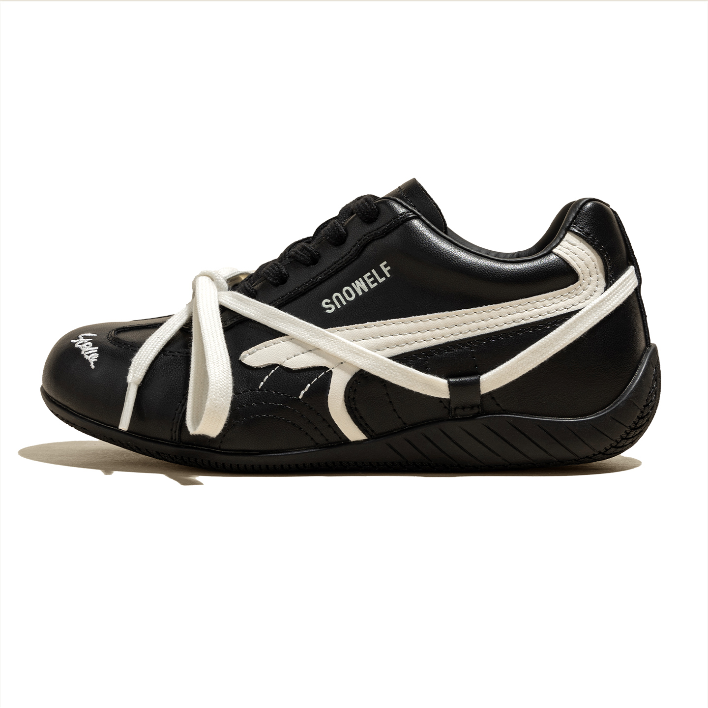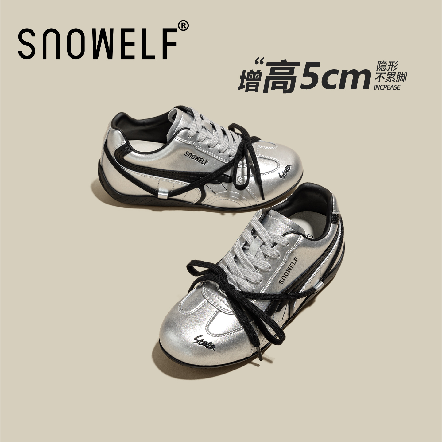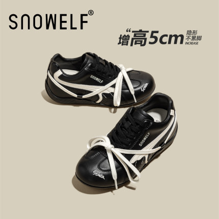 黑色内增高德训鞋子女2025新款秋冬百搭轻便运动休闲鞋真皮赛车鞋