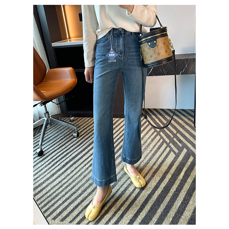 四面弹九分微喇牛仔裤女春秋季