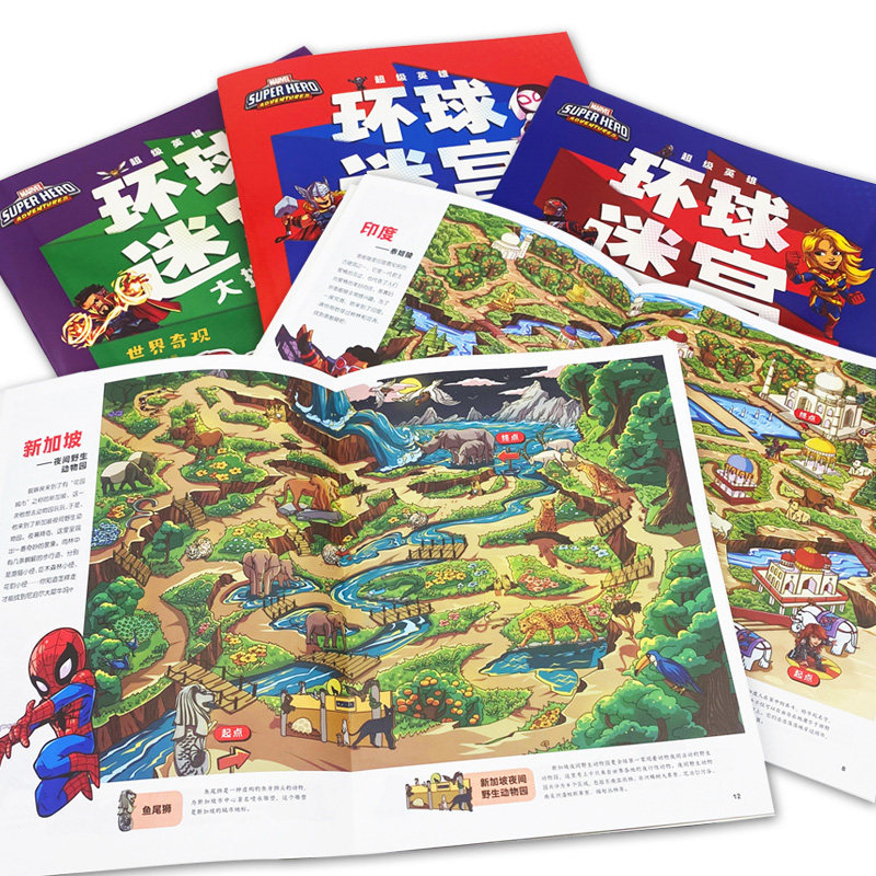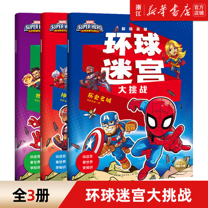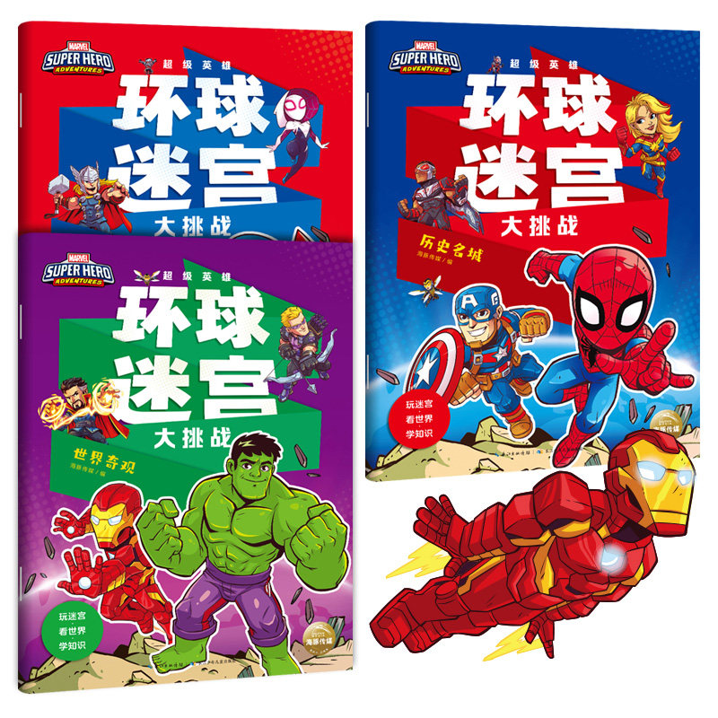 漫威超级英雄环球迷宫大挑战全套3册3-4-5-6岁幼儿童专注力训练逻辑思维能力培养益智游戏书科普百科图画书迷宫大冒险