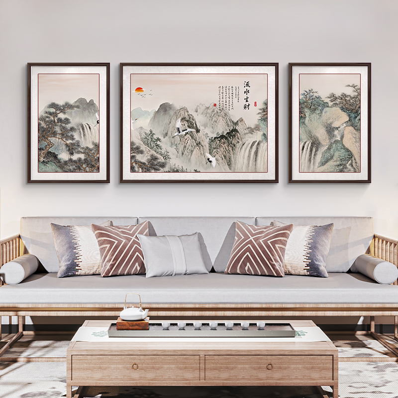 新中式客厅装饰画山水风景画沙发背景墙挂画三联国画高档大气壁画