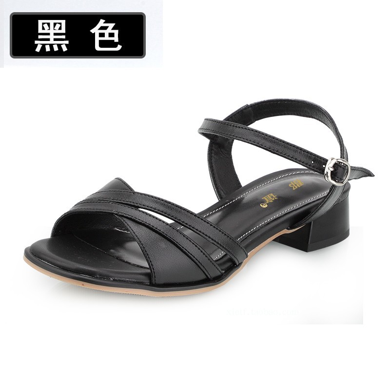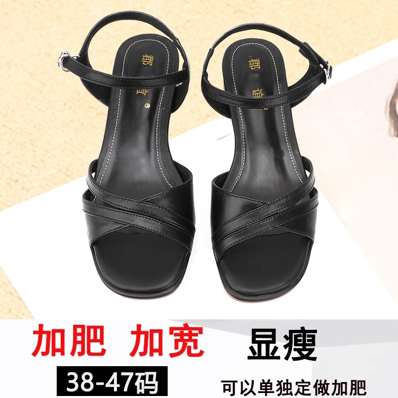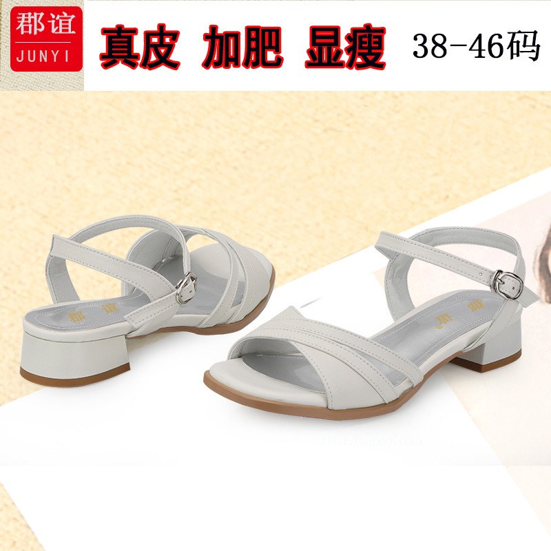 加肥加宽夏季42大码43中跟女士真皮凉鞋44胖脚大号46凉皮鞋45防滑