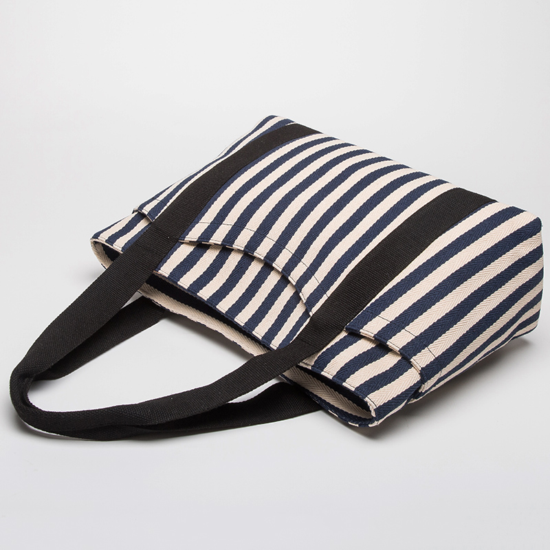 条纹帆布包女单肩托特包时尚休闲大包女手提旅行大容量帆布袋妈咪