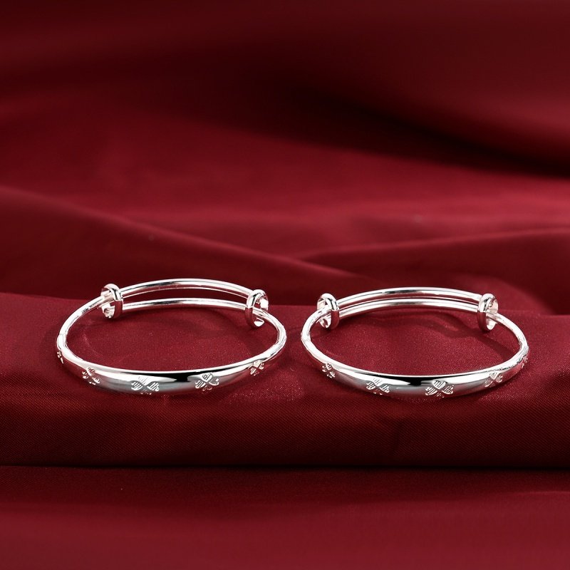 镀银手镯婴儿宝宝银镯子儿童男女小孩满月银饰百日周岁礼物