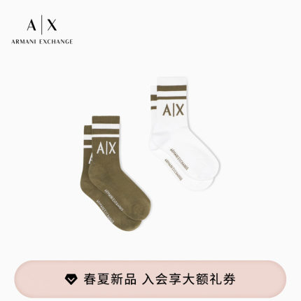 ARMANI EXCHANGE/阿玛尼女士两双装运动耐穿提花中筒堆堆棉袜子