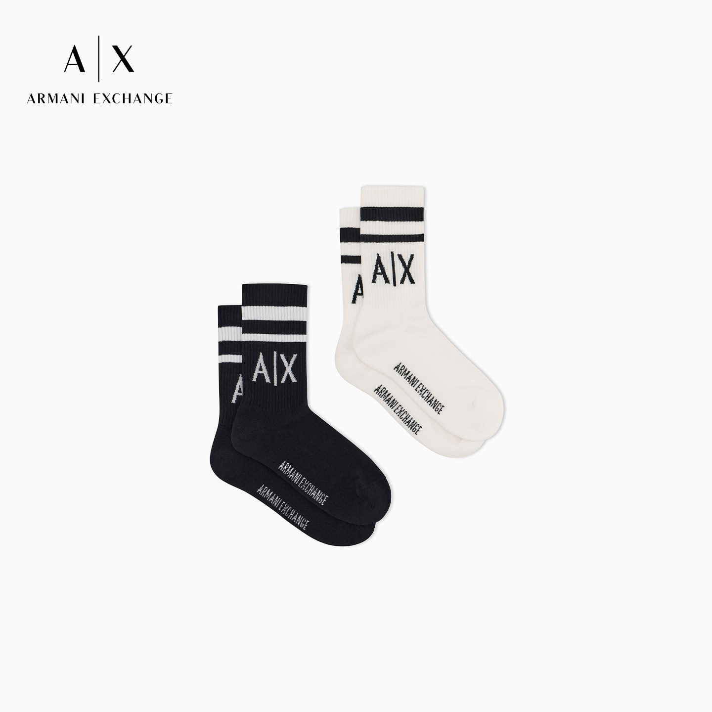 AX/阿玛尼女士两双装棉质中筒袜