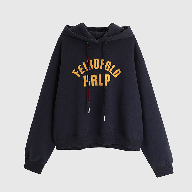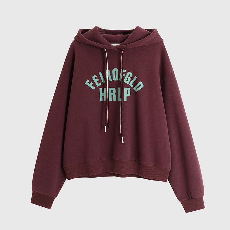 IMCC设计感小众撞色字母加绒连帽卫衣女宽松百搭加厚套头帽衫外套