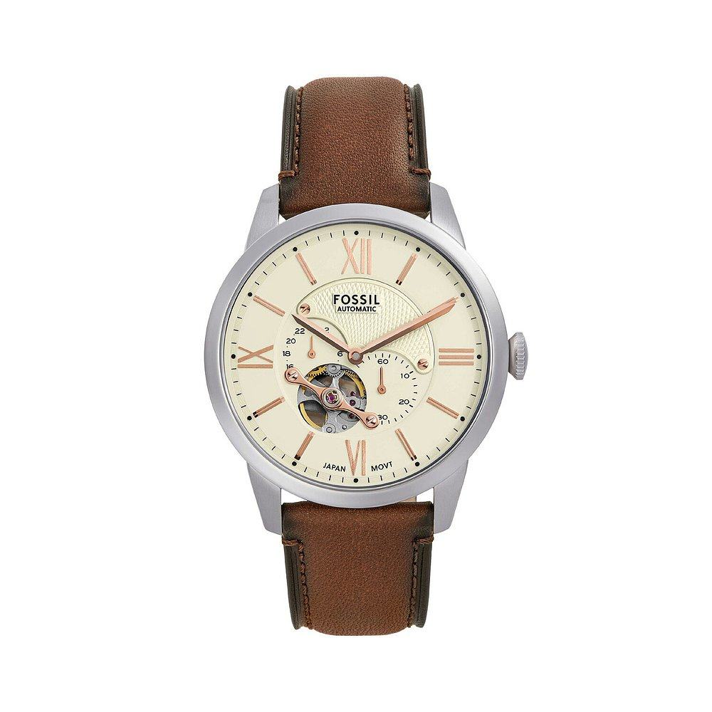 日本直邮FOSSIL 男士自动 Townsman 多功能棕色皮革手表 ME3266