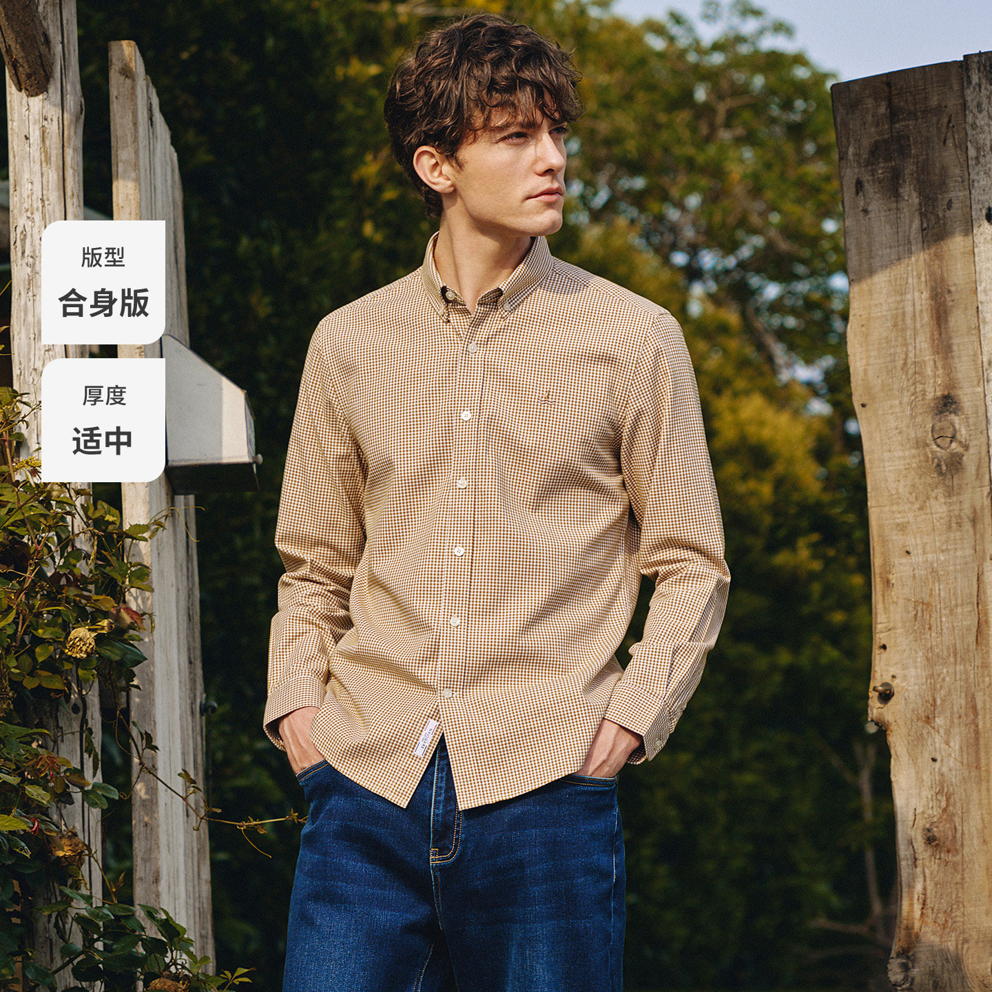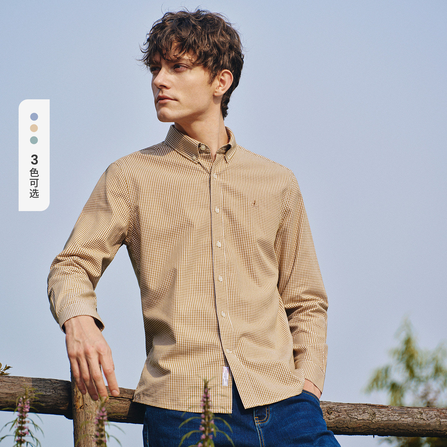 Navigare意大利小帆船纯棉牛津纺衬衫男翻领新款细格子长袖衬衣