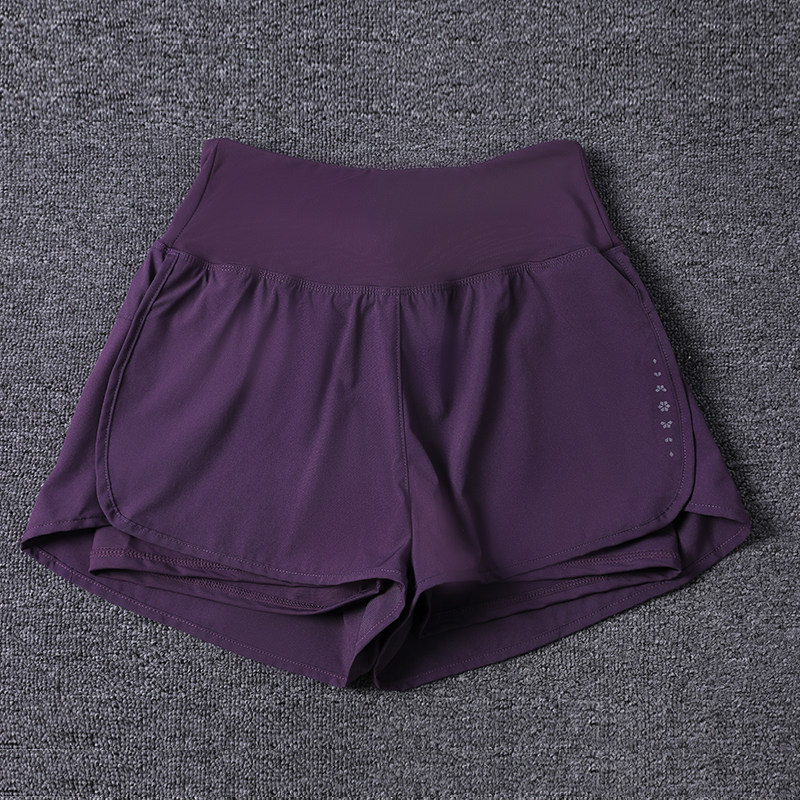 防走光瑜伽裤女假两件速干夏季跑步带口袋运动短裤透气跳操健身裤