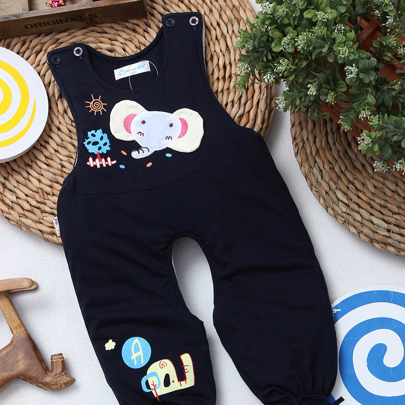 偶园婴儿连脚棉裤1岁加棉加厚男女宝宝秋冬开档背带新生儿棉裤