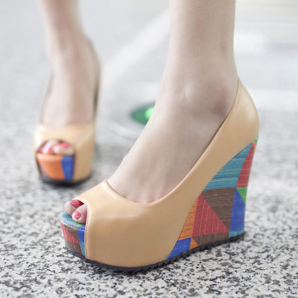 2016新款春夏秋季坡跟鞋高跟单鞋女鞋子浅口防水台鱼嘴鞋厚底凉鞋