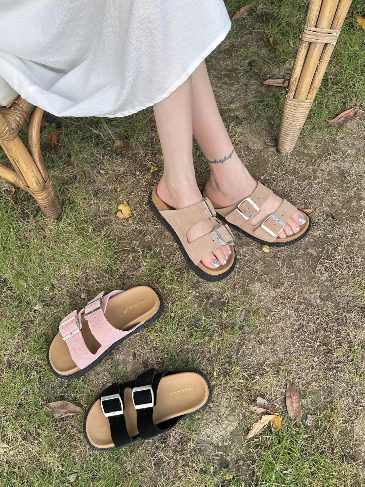 复古厚底皮带扣勃肯拖鞋女夏外穿
