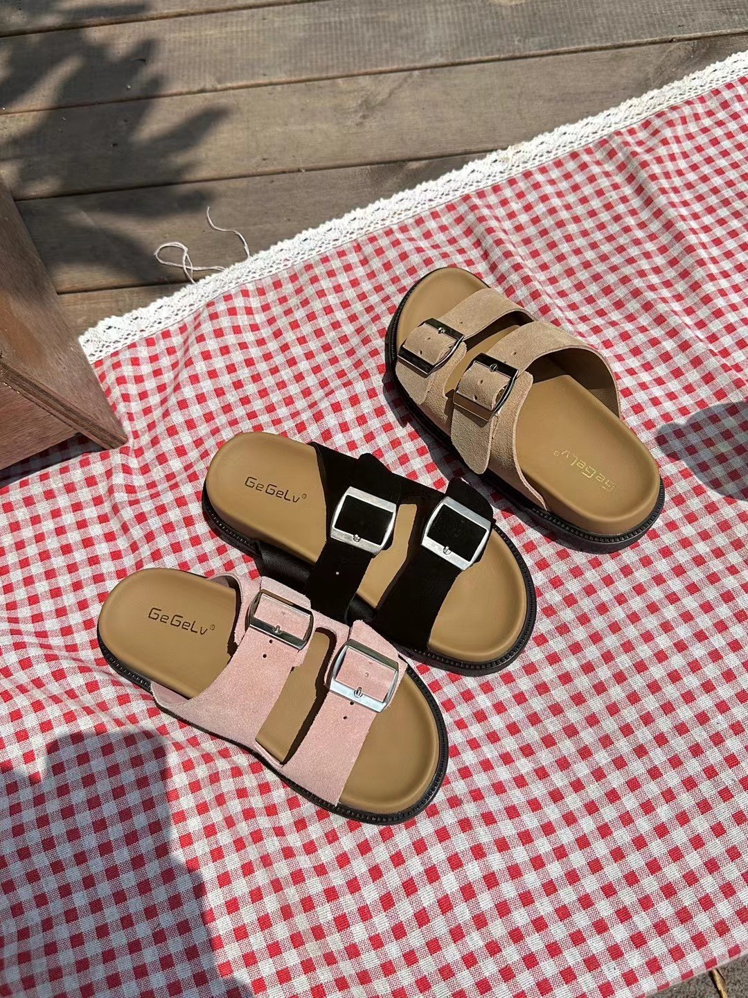 GEGELV复古厚底皮带扣勃肯拖鞋女夏外穿韩版休闲百搭沙滩一字拖鞋