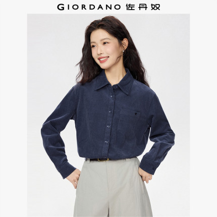 佐丹奴灯芯绒衬衫女秋冬新款复古纯棉刺绣口袋长袖衬衣女13345855