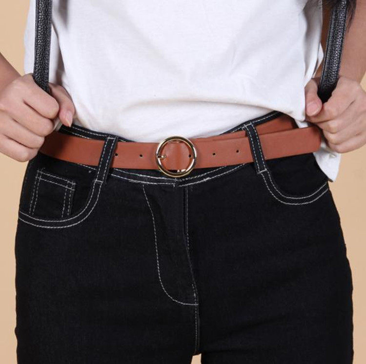 现货实拍速发 当季流行圆扣韩版简约青年街拍学生牛仔裤皮带女带