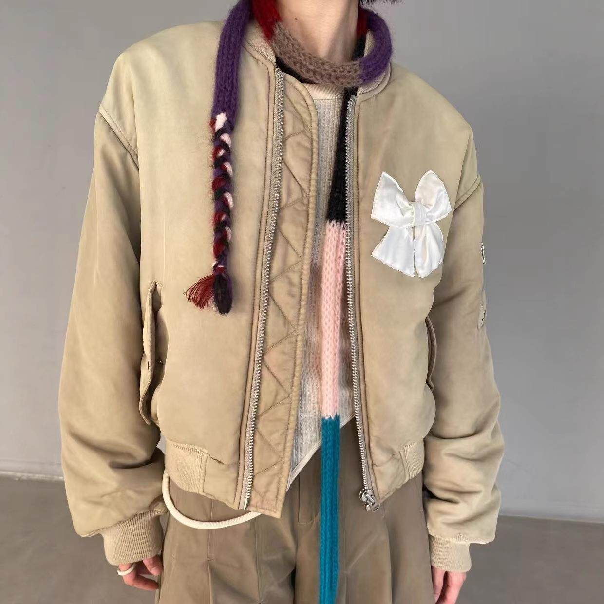 【现货】GROVE EDGE韩国小众jennie蝴蝶结棉服飞行夹克棒球服外套