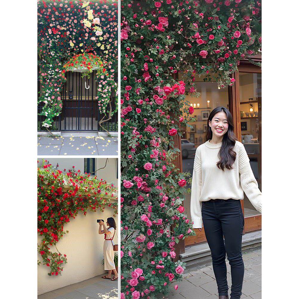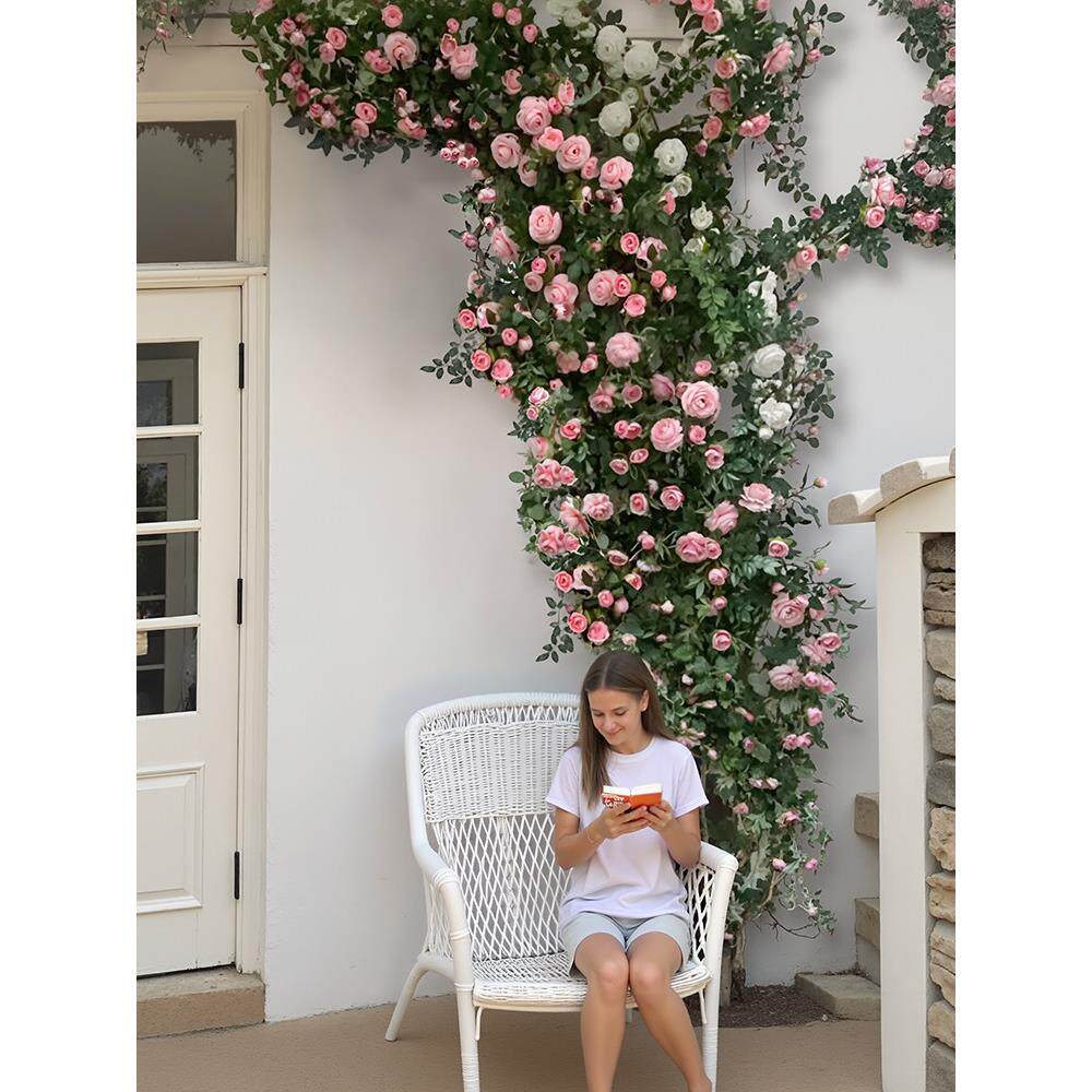 彷真玫瑰花藤网红背景墙打卡拍照假花民宿庭院阳台瀑布花墙装饰品