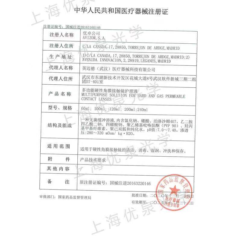 Avizor优卓GP护理液120ml硬性隐形眼镜ok镜双氧水除蛋白润滑液