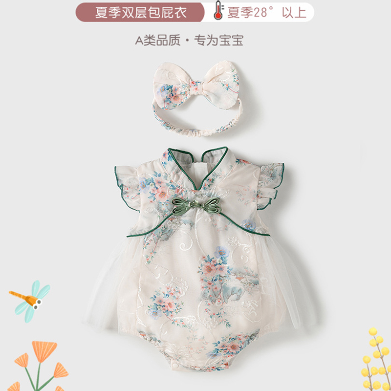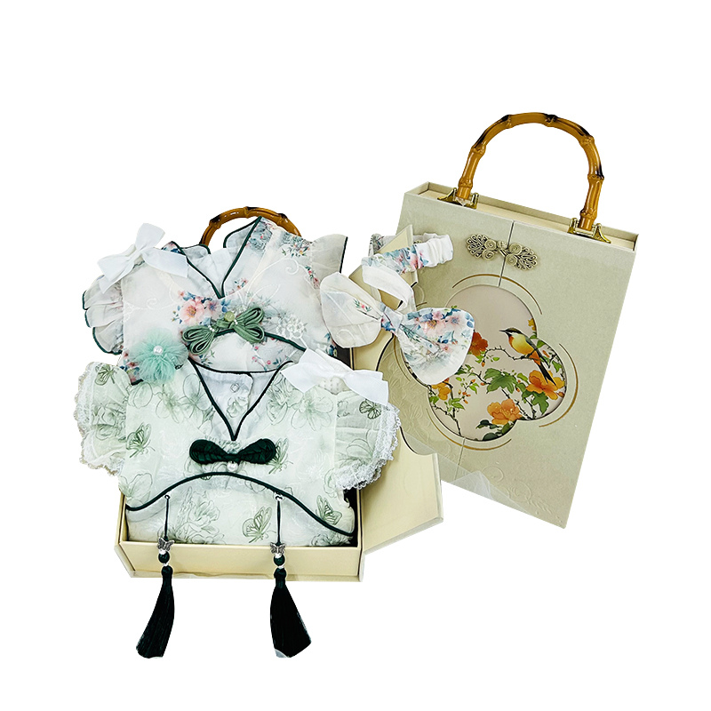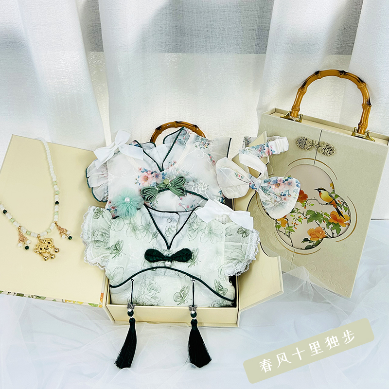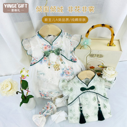 新生的儿见面礼盒女宝宝小清新中国风旗袍汉服连体衣婴儿满月礼物