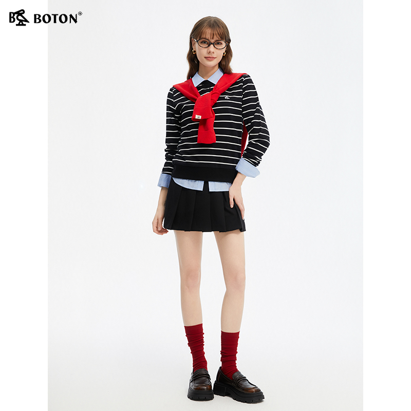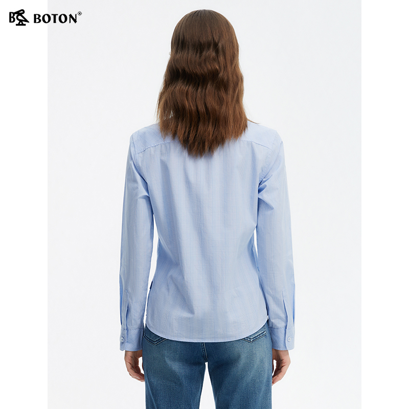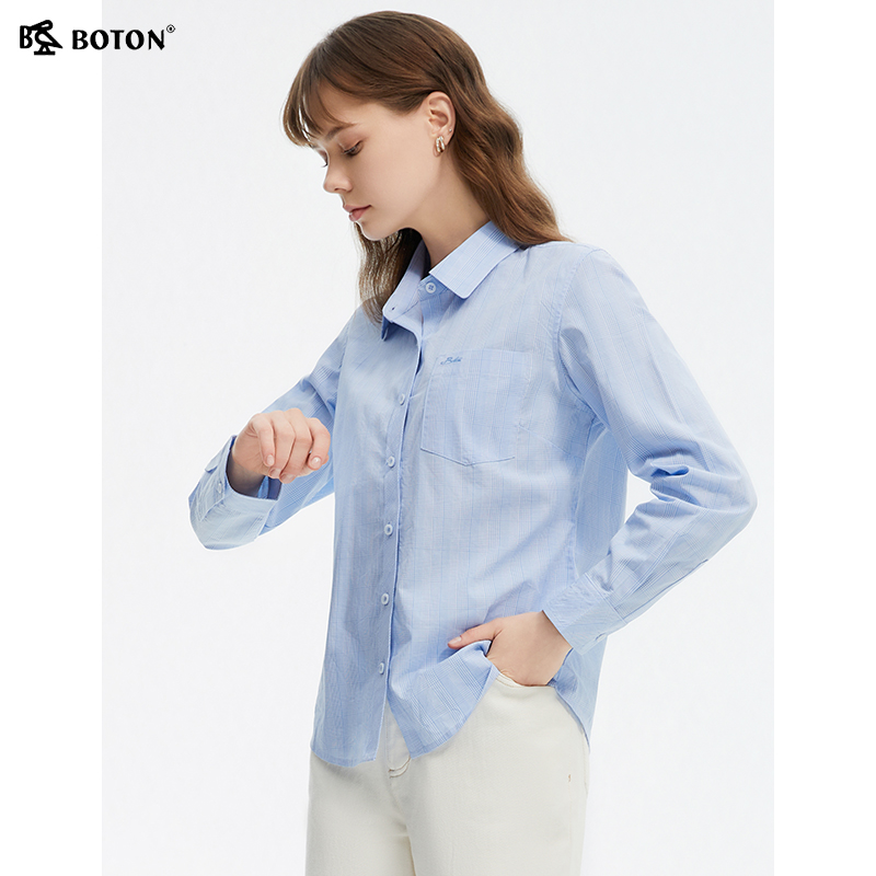 波顿2025春夏季新款蓝白色格子女士长袖衬衫高端美式休闲复古衬衣