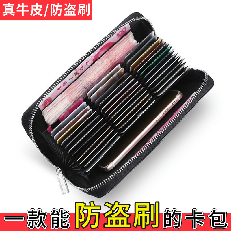 防盗刷卡包男女士多卡位大容量银行卡套夹钱包一体真皮证件收纳包