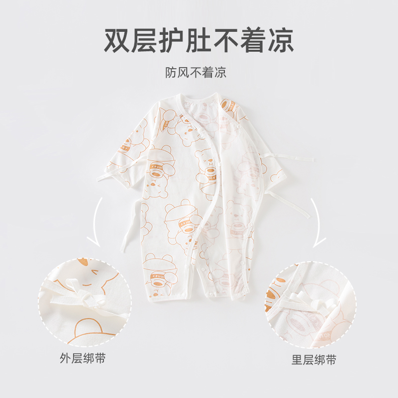 迪士尼婴儿连体衣夏季薄款宝宝空调服新生儿长袖衣服纯棉爬服睡衣