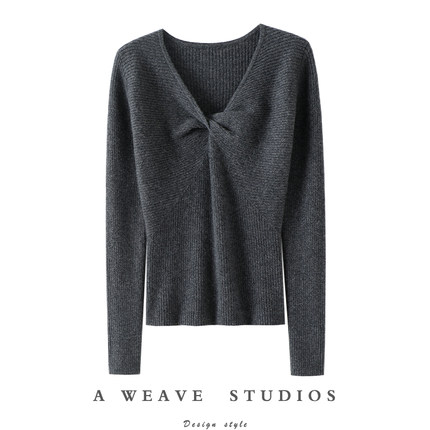 秀场之作!扭结V领100%纯山羊绒衫女纯羊绒毛衣针织打底衫秋冬