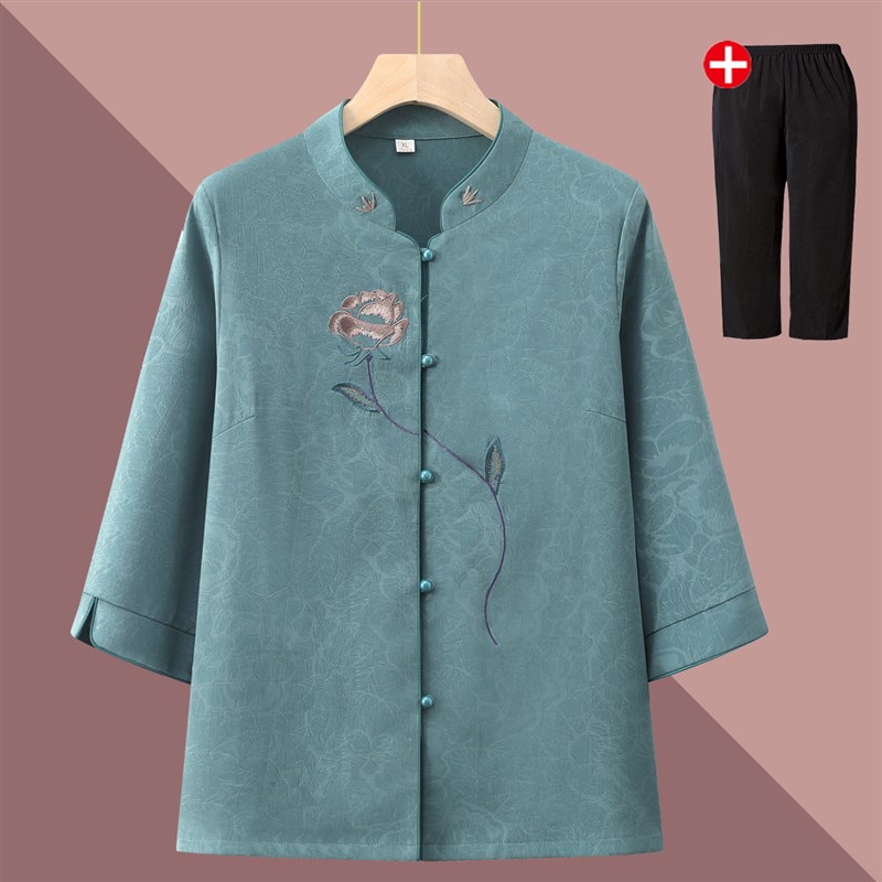 奶奶夏装衬衫女中老年人七分袖开衫妈妈装夏季绣花70岁80老人衣服