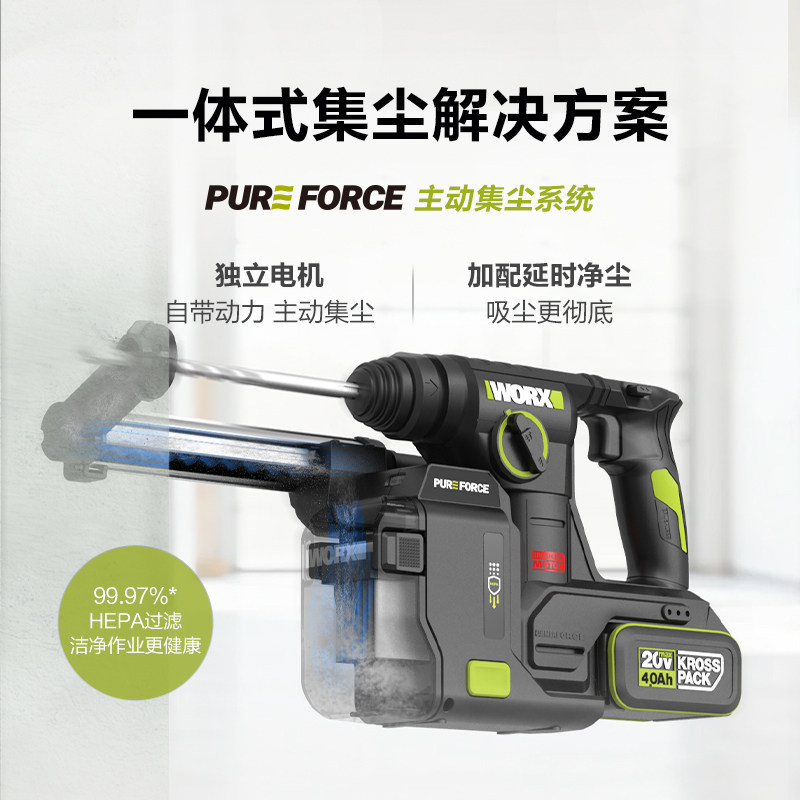威克士锂电集尘电锤WU384T充电冲击钻两用打混凝土钻墙电动工具