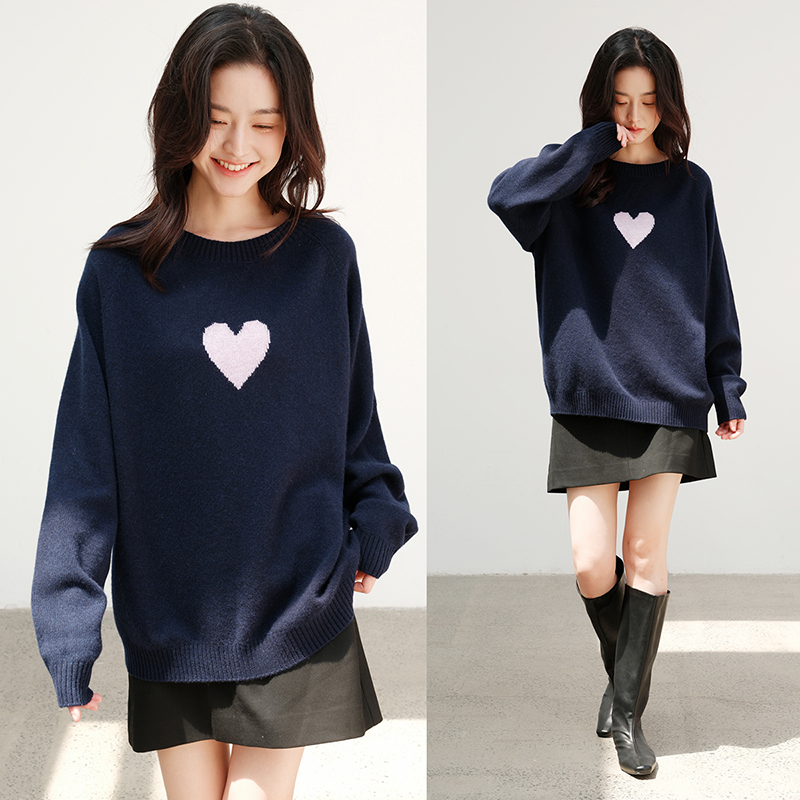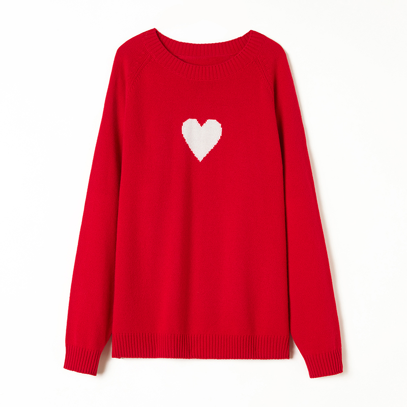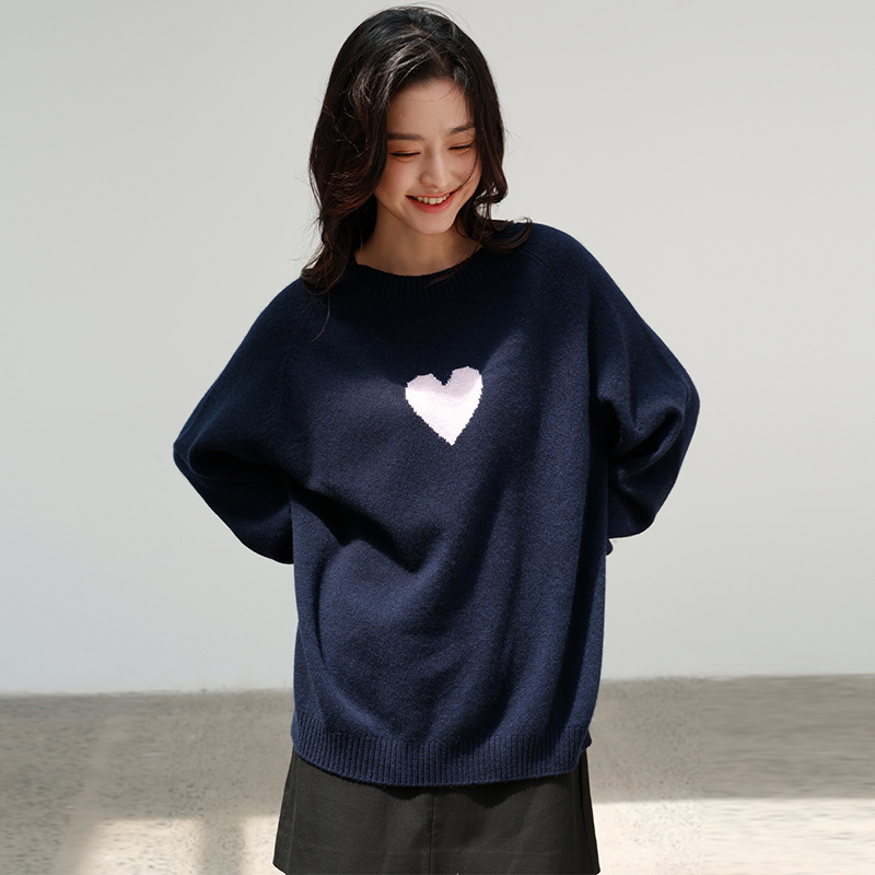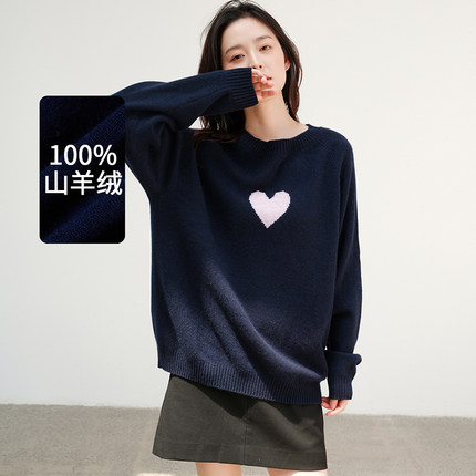 思诺芙德100%山羊绒衫女25秋冬新款圆领爱心厚毛衣宽松针织上衣