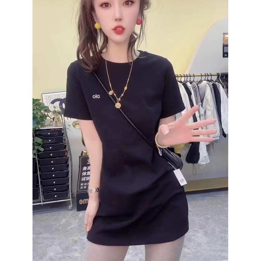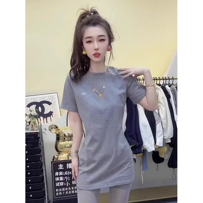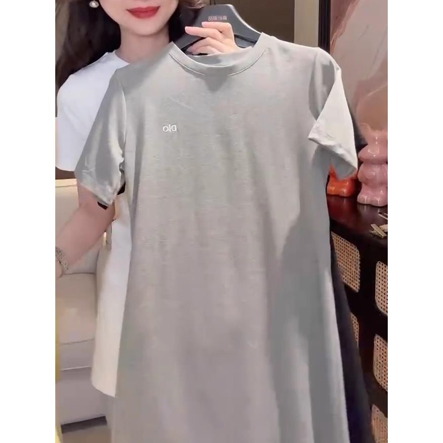 韩版简约圆领短袖T恤中长款