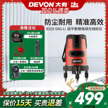 DEVON大有绿光水平仪3线激光红外线高精度自动找平打线投线仪9319