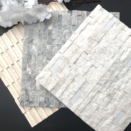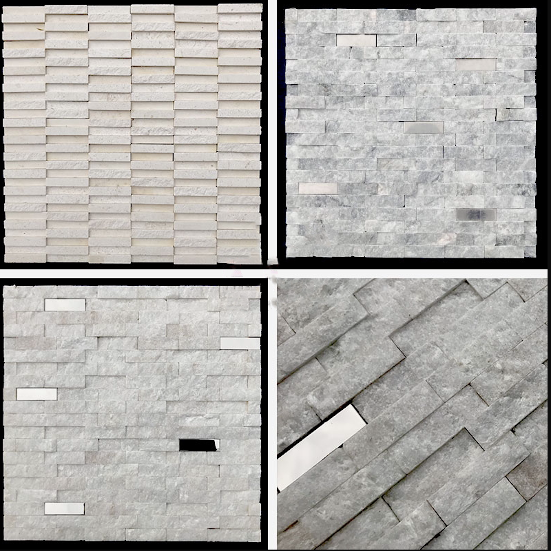 天然石材马赛克电视背景墙白色断面立体文简约金属大理石瓷砖墙贴