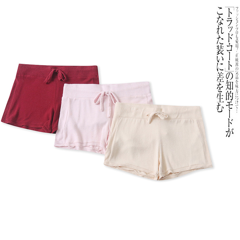 V6950外贸欧美单女生薄款针织短裤新款松紧腰系带修身百搭五分裤