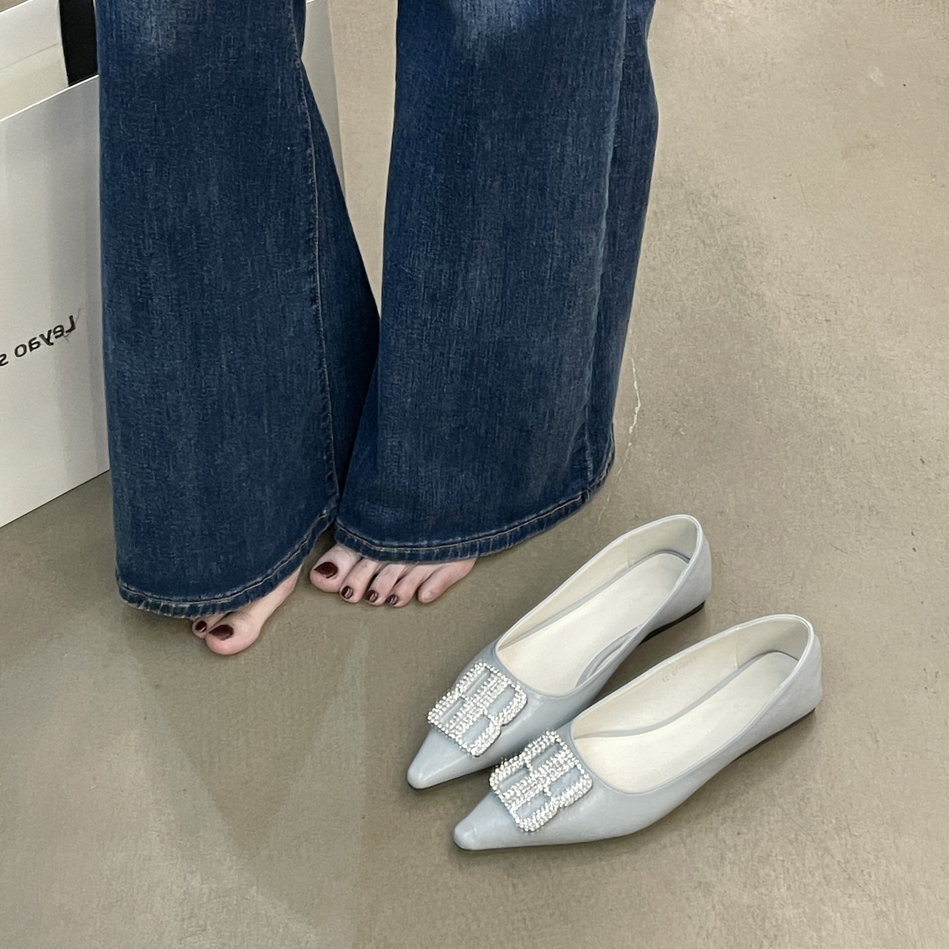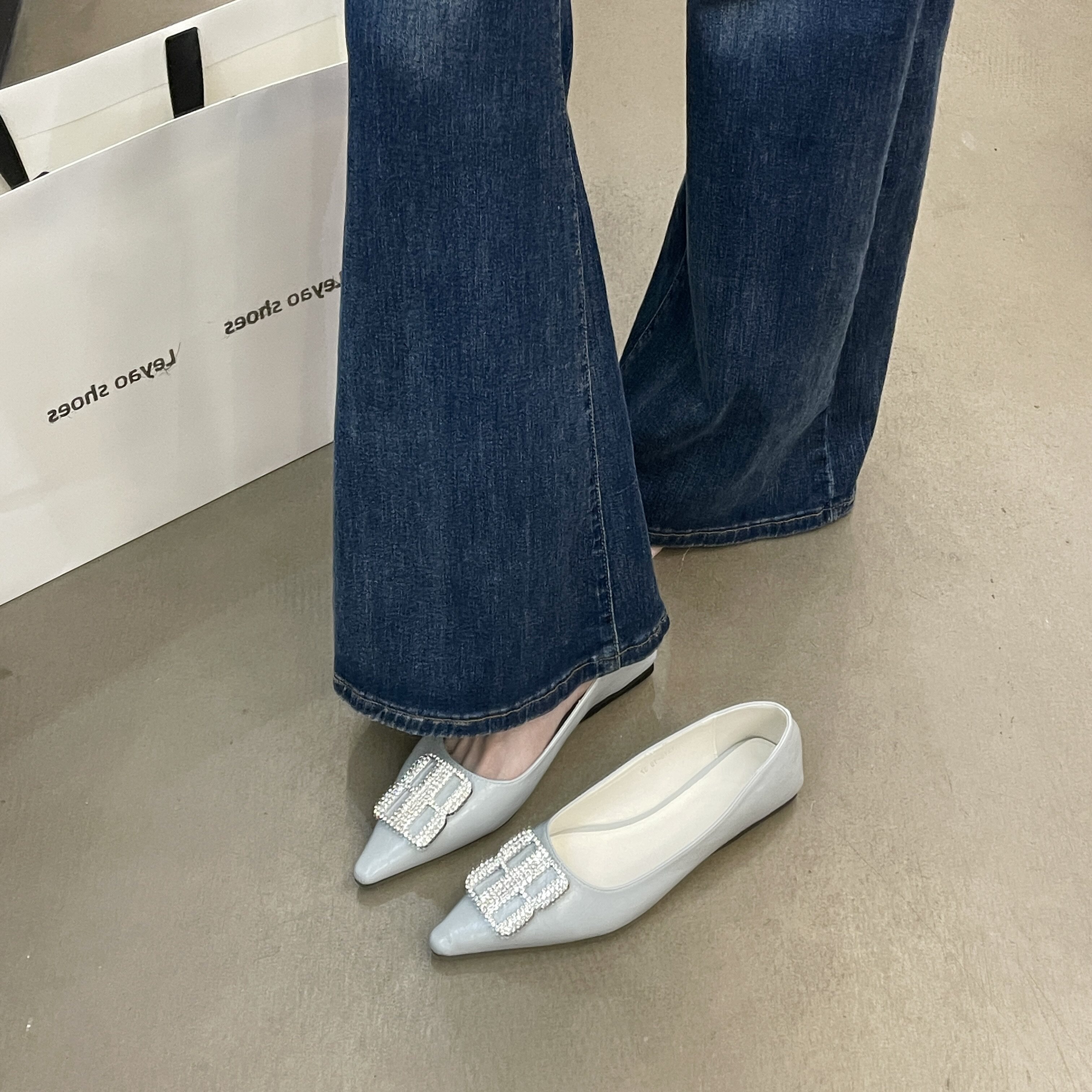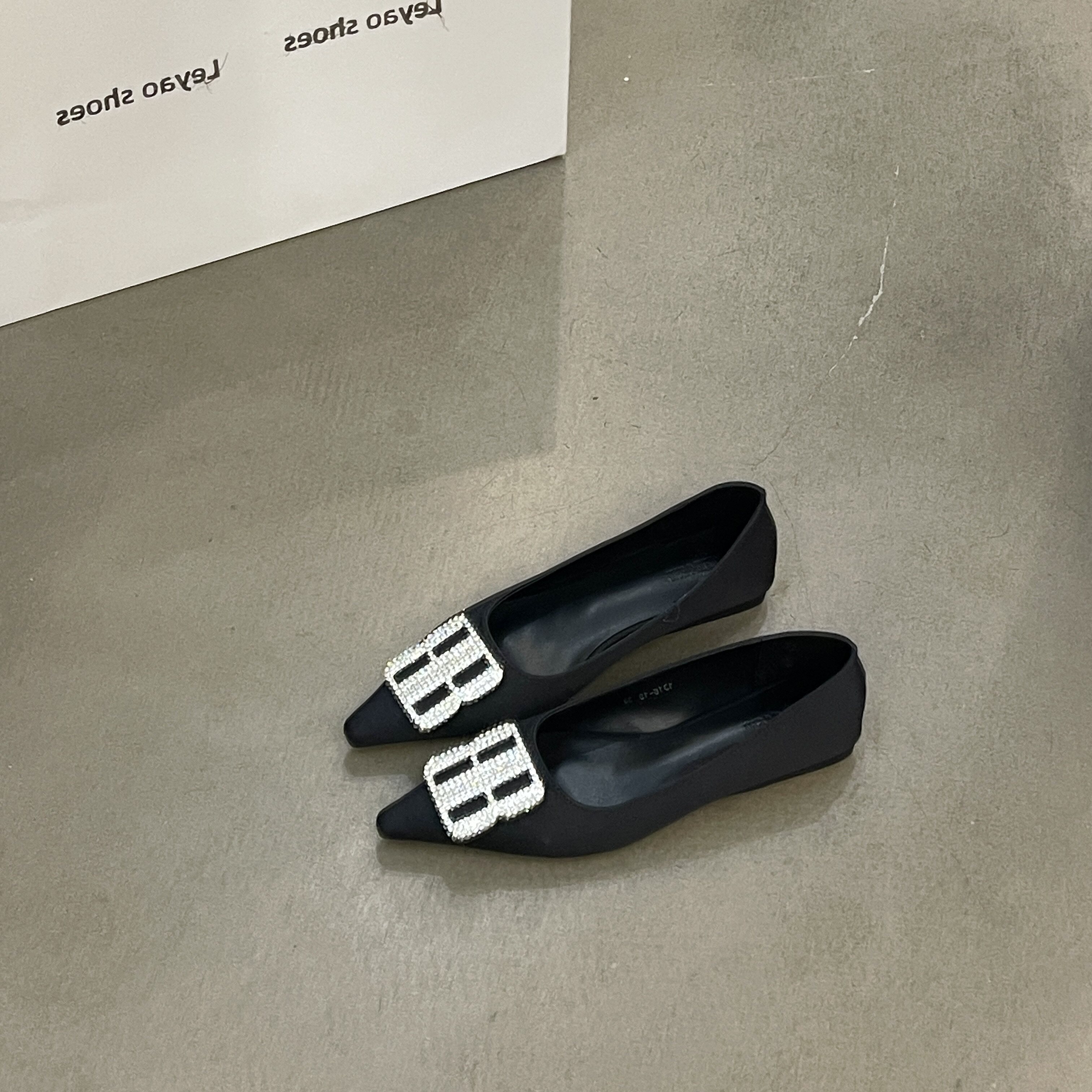 金属扣尖头细跟猫跟通勤单鞋