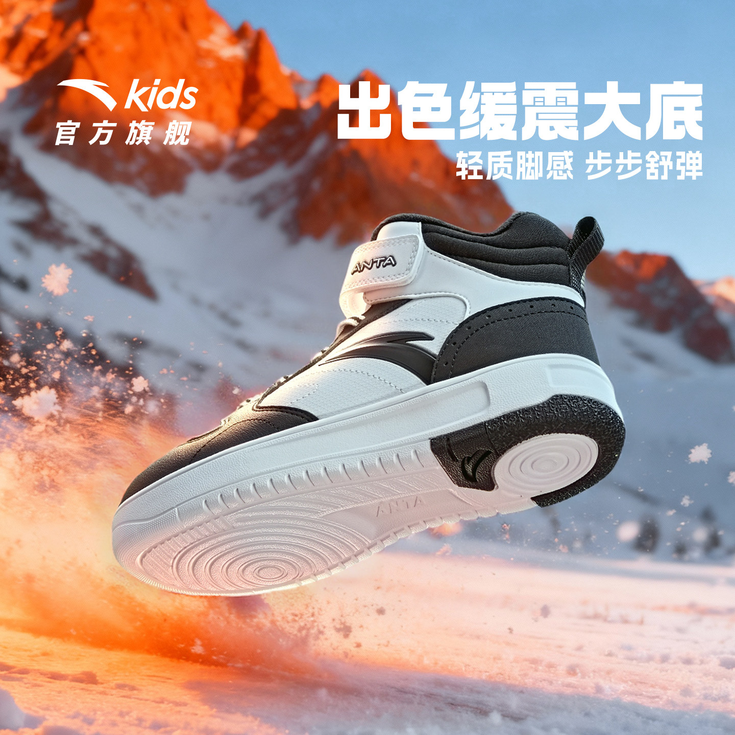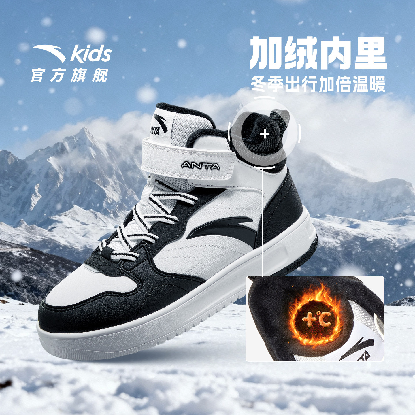 安踏儿童高帮加绒板鞋男女童棉鞋2025冬季新款保暖加厚大童二棉鞋