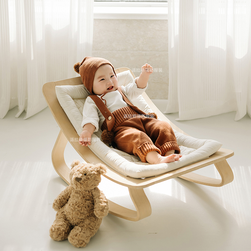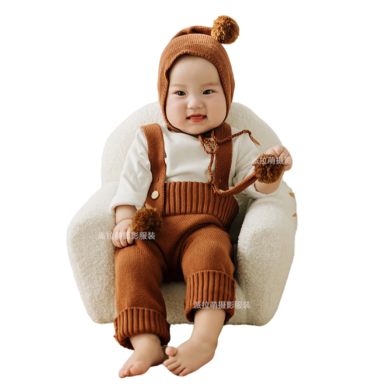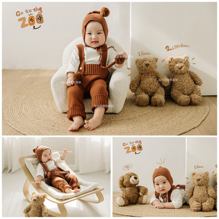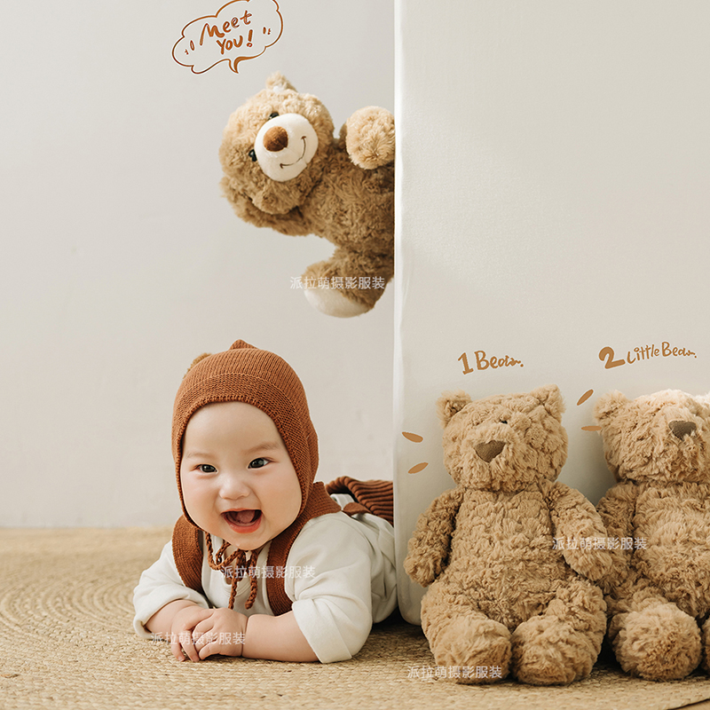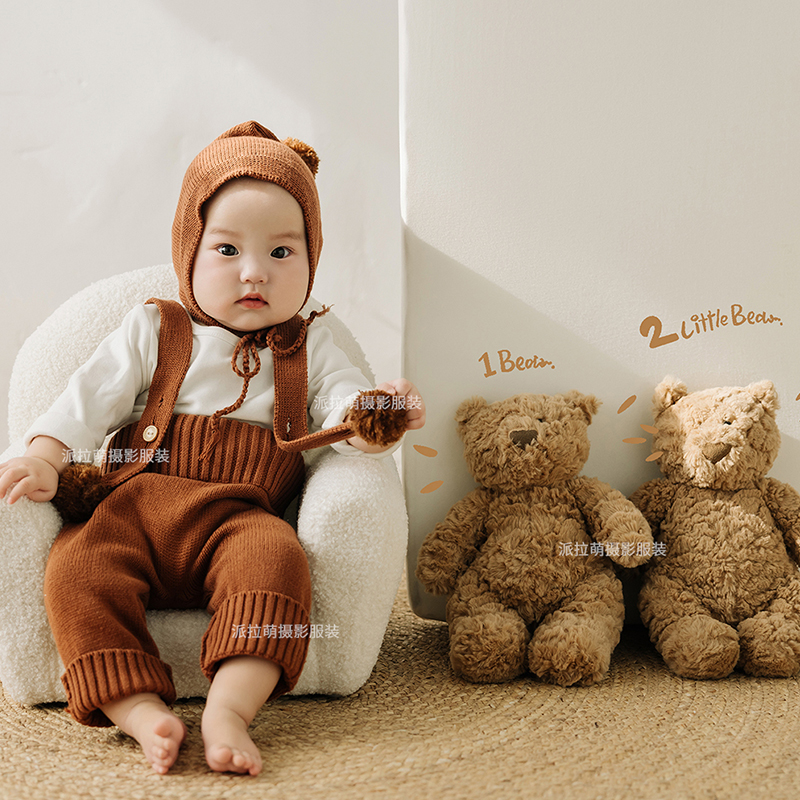 儿童摄影服装焦糖系小熊系列宝宝百天照周岁照拍照衣服写真背带裤