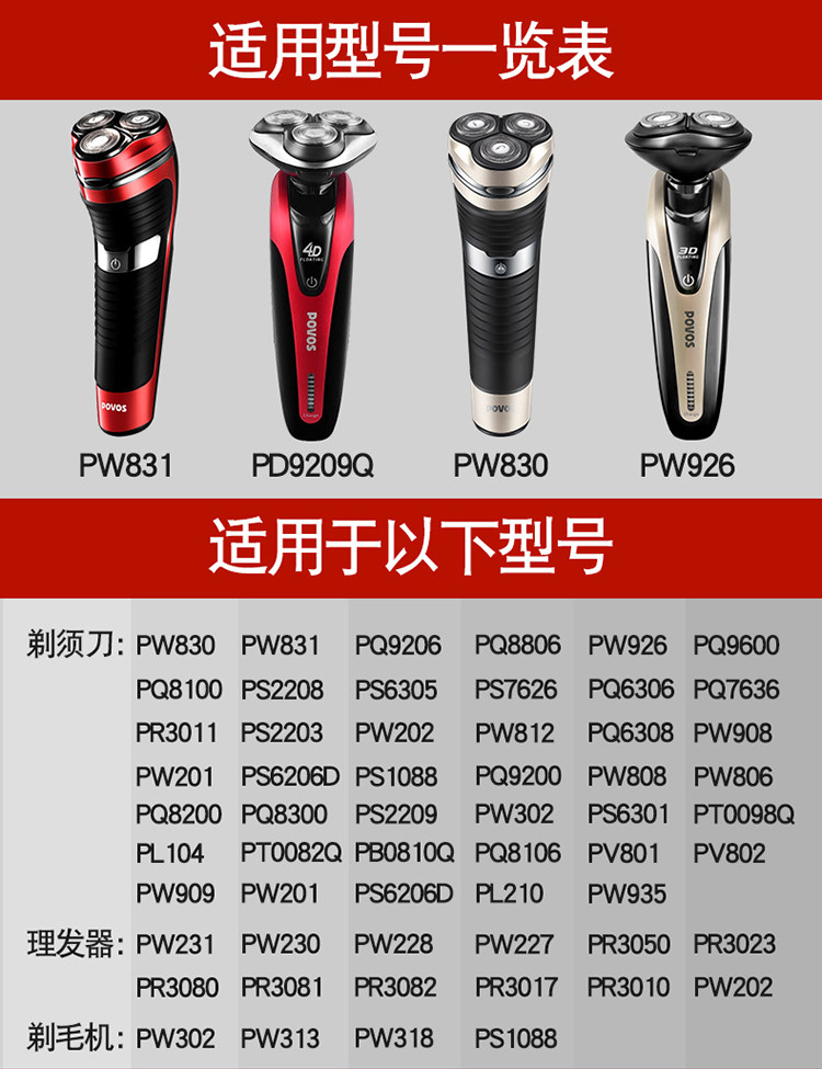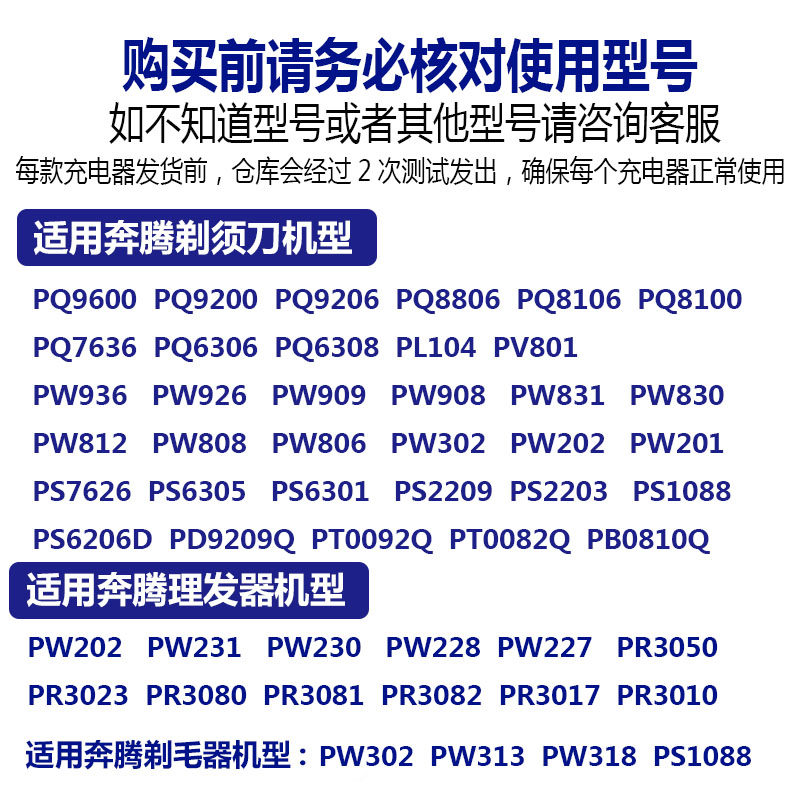 Povos奔腾电动剃须刀PW926充电器 936 PQ9600 8600 9206USB电源线