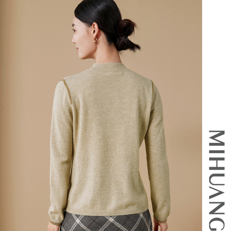 米皇秋季新款半高领羊绒衫女上衣时尚纯色淑女纯羊绒毛衣针织衫